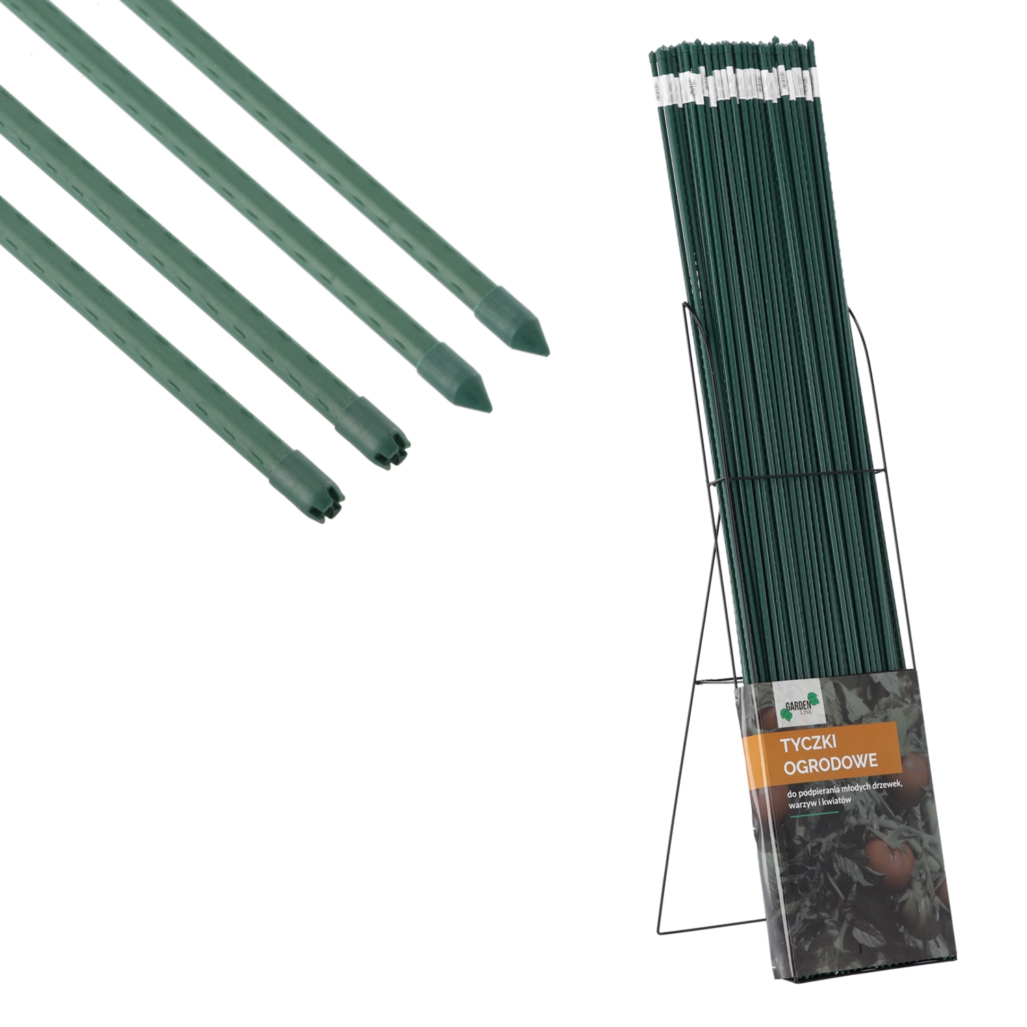 La tige revêtue, robuste, est idéale pour les plantes grimpantes, les fleurs fragiles, les petits fruits et les légumes. Grâce à son extrémité pointue, elle s’enfonce facilement dans le sol, tandis que les rainures longitudinales maintiennent tiges et liens en place. La surface en polyéthylène protège le noyau en acier contre la corrosion et prolonge la durée de vie du tuteur, même en usage toute l’année.