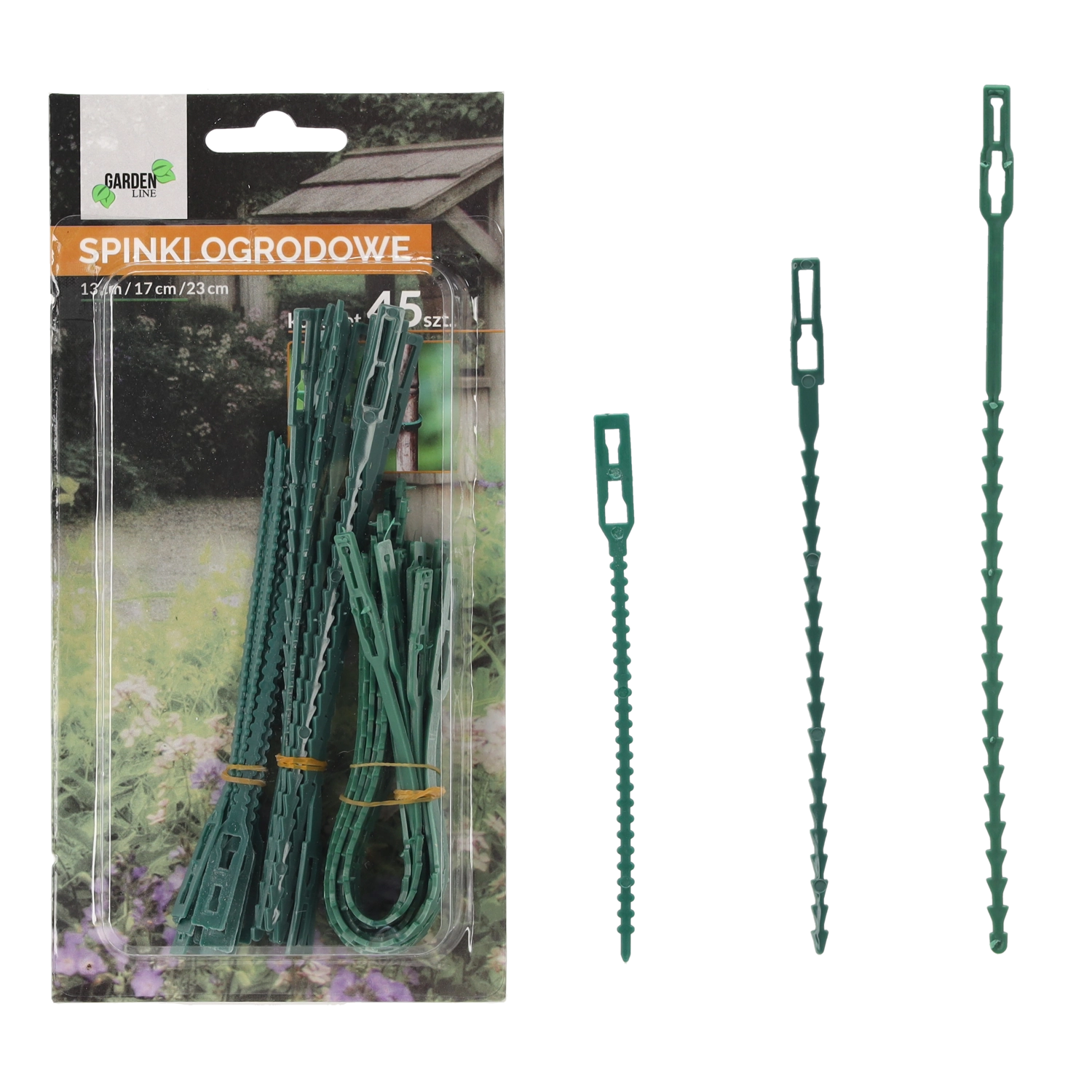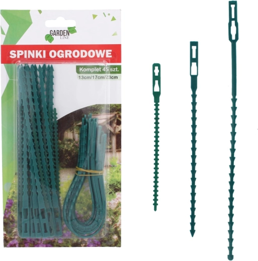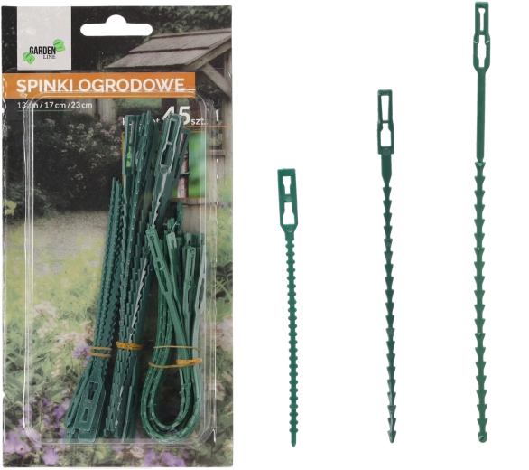 Pratique lot de 45 clips de jardin de 13, 17 et 23 cm pour fixer fiablement les plantes à leurs supports sans abîmer les tiges. Plastique résistant et flexible pour des utilisations répétées, tandis que la couleur verte se fond discrètement dans les massifs, la serre ou le balcon.