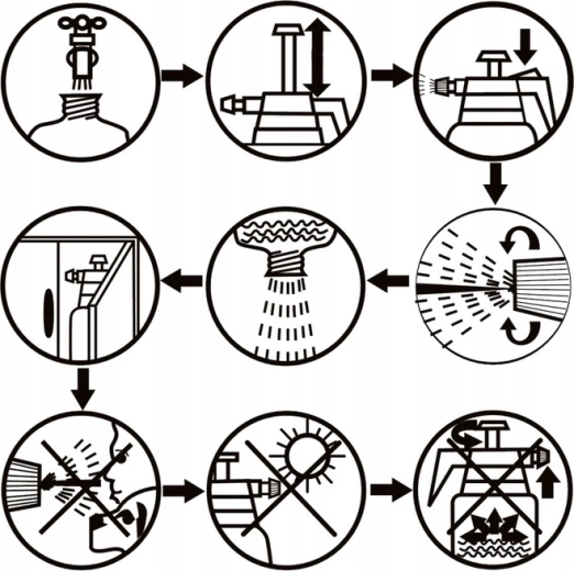 - Utilisation facile : remplissez, serrez le couvercle, pompez de l’air et pulvérisez.