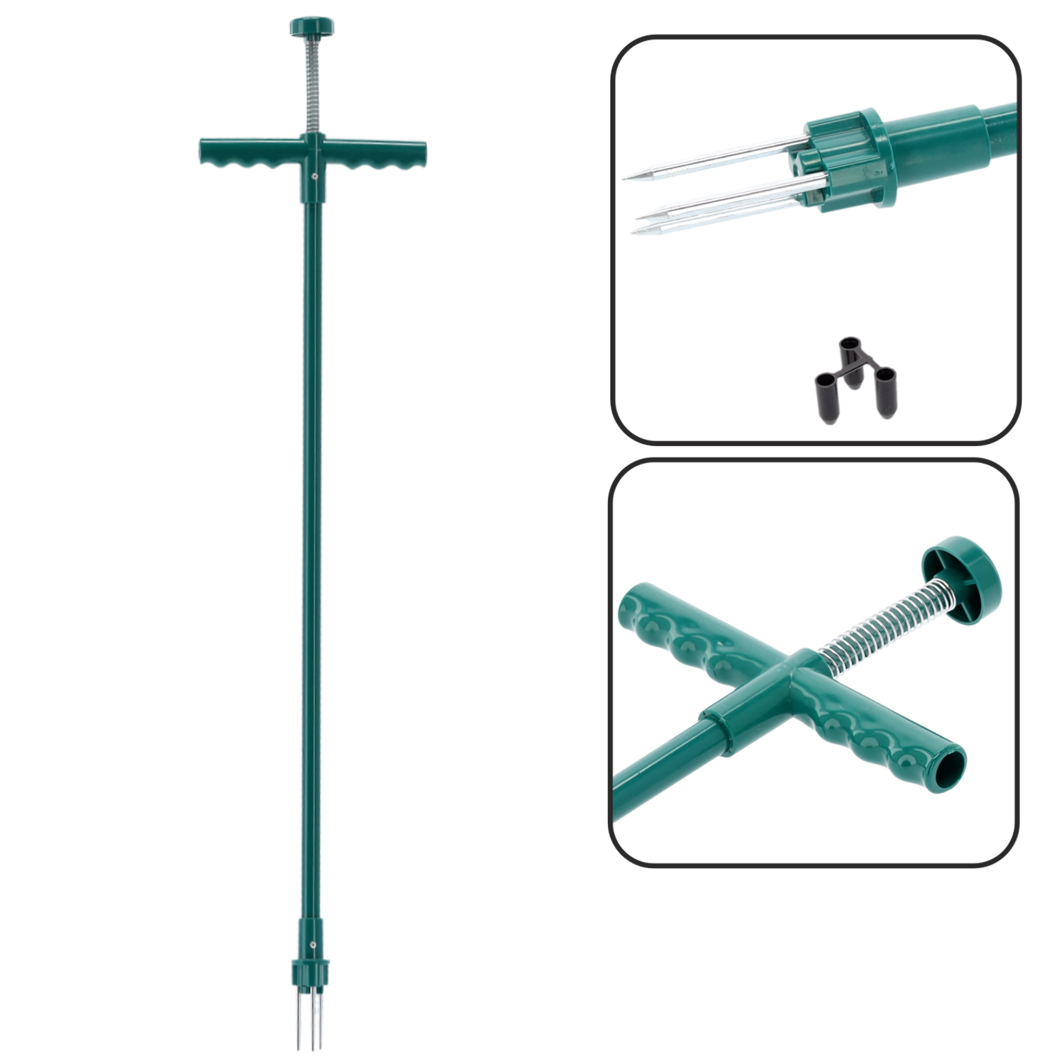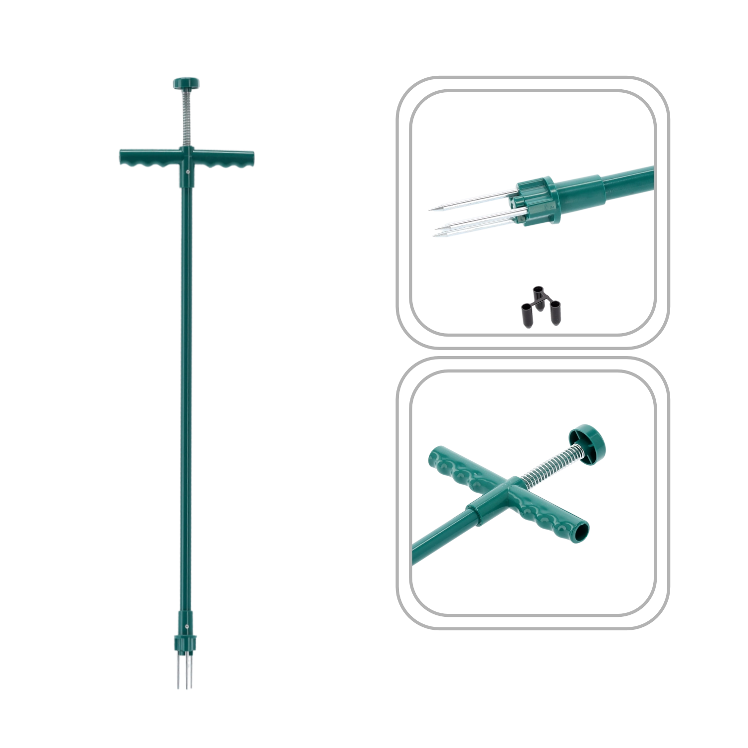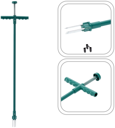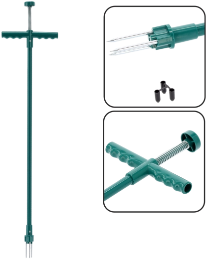 La large poignée en T en plastique, combinée au mécanisme à ressort, facilite la rotation et le relâchement de la mauvaise herbe sans effort inutile.