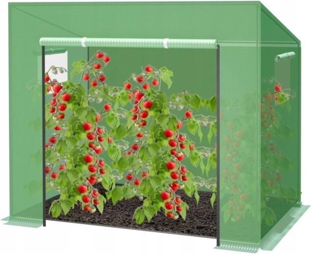 Pratique serre tunnel verte pour cultiver tomates, poivrons, concombres et herbes, créant un microclimat idéal pour une croissance plus rapide et une récolte abondante. Bâche renforcée et maillée 130 g/m², armature en acier Ø 16 mm et fenêtres d’aération avec moustiquaire protégeant les plantes du vent, de la pluie et des nuisibles. Grande entrée roulante zippée pour un accès facile et une aération aisée.