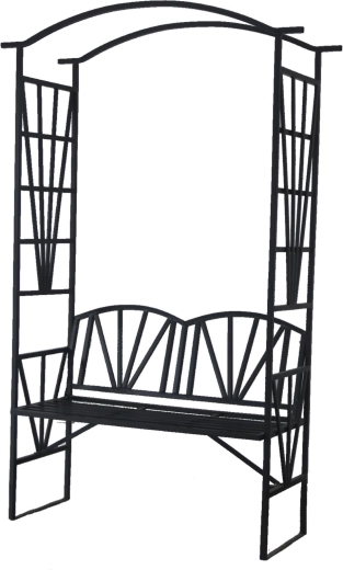 Cette pergola élégante, dotée d’une arche supérieure et d’un banc intégré, offre une assise confortable pour deux personnes tout en servant de support fiable pour les rosiers, clématites ou chèvrefeuilles. Le revêtement noir thermolaqué protège la structure métallique contre la corrosion et facilite l’entretien. Idéale pour les jardins, terrasses et cours où vous souhaitez allier esthétique et fonctionnalité.