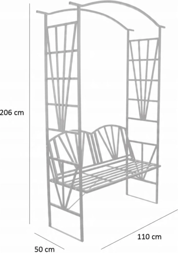 Les treillages latéraux favorisent une croissance vigoureuse des grimpantes qui, avec le temps, créeront une ombre naturelle et apporteront une touche romantique à l’espace. Grâce à ses dimensions compactes, elle s’installe facilement même dans les petits espaces et crée un coin agréable pour se détendre lors du café du matin ou du repos du soir.