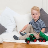 Le tracteur avec remorque de la gamme Truckies ravira les petits bâtisseurs comme les apprentis fermiers. Grâce à sa construction solide et à son contrôle entièrement mécanique, les enfants profitent d’un jeu authentique sans piles – levage de la benne, attelage et dételage de la remorque, et conduite avec la figurine du conducteur.