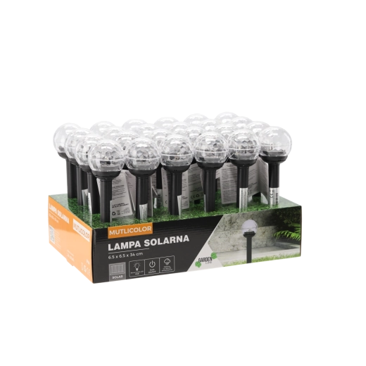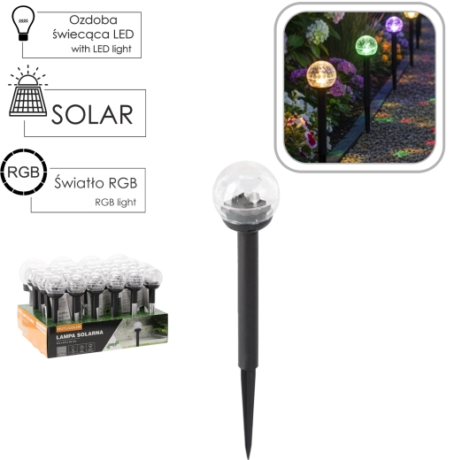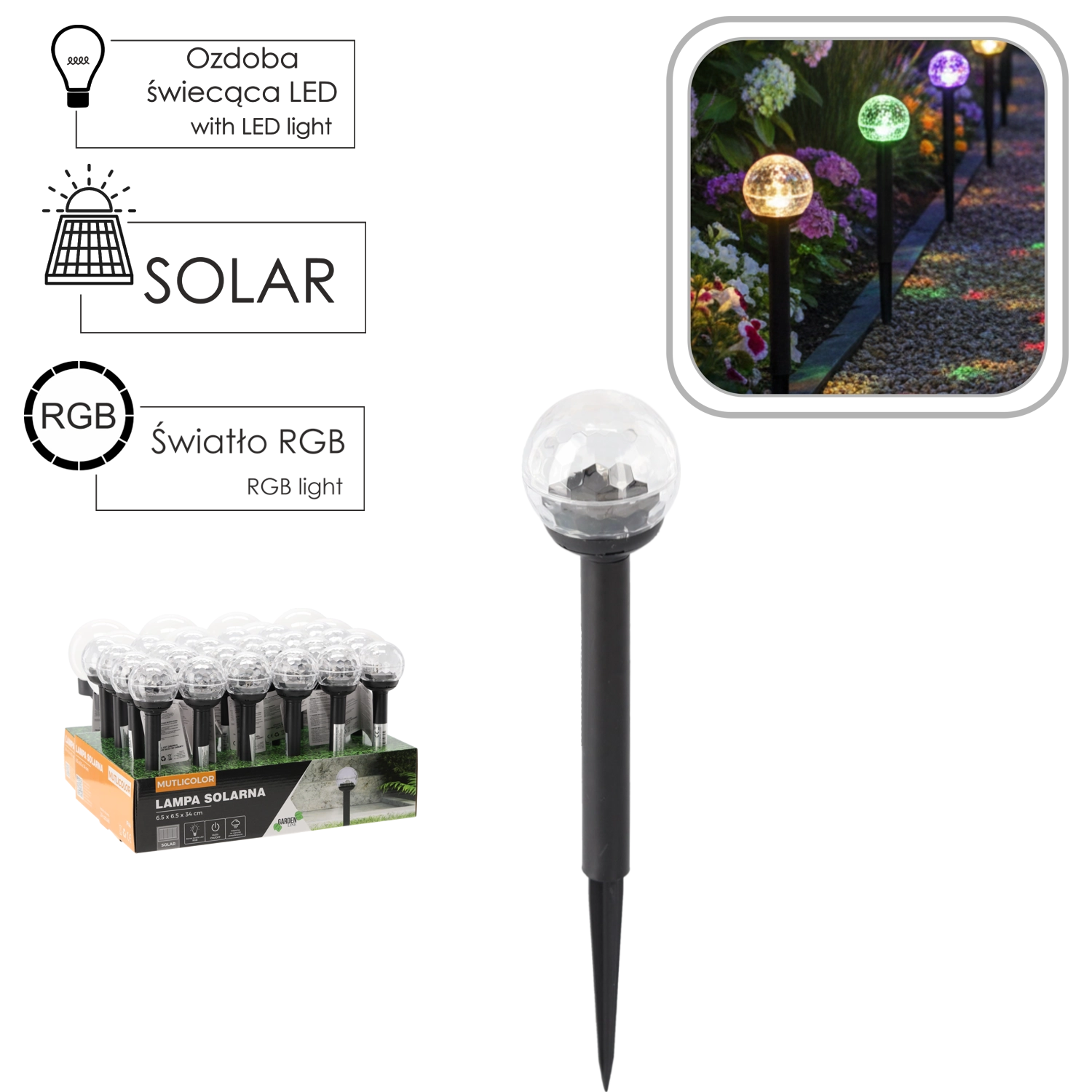 Lampe LED solaire élégante pour le jardin avec effet multicolore RVB, offrant un éclairage agréable sans câbles ni coûts d’énergie. Grâce au panneau solaire, elle se recharge le jour et s’allume automatiquement le soir. La résistance IP44 et la fixation au sol par piquet garantissent une installation facile et un fonctionnement fiable le long des allées, sur les terrasses ou autour des massifs.