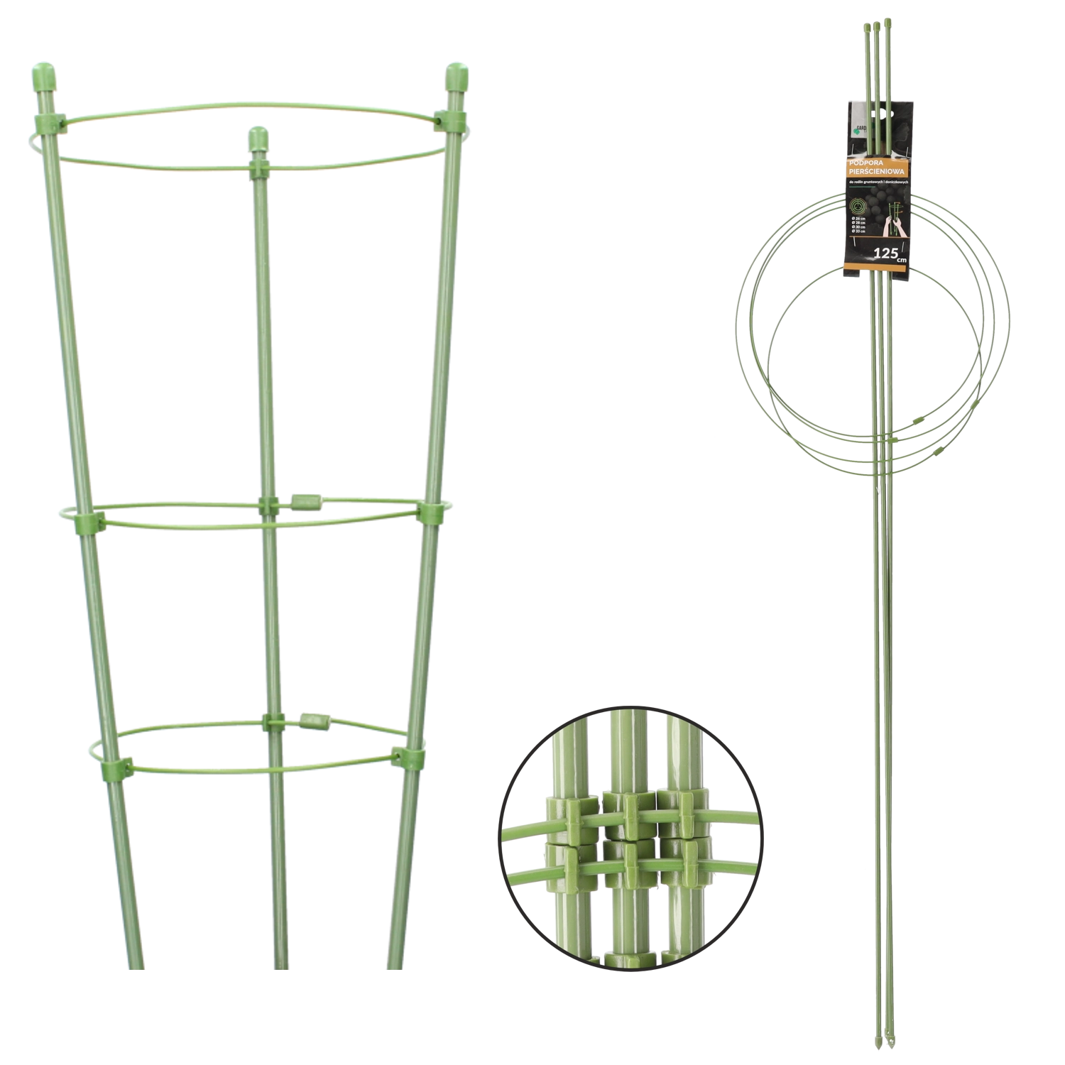 Ce support circulaire à quatre anneaux aide à maintenir les plantes droites et les protège contre la verse, la casse et les dommages causés par le vent. Grâce à son ancrage stable dans le sol et aux possibilités d’attacher les tiges, il offre un soutien durable sans entraver la croissance naturelle. Sa finition verte est discrète et s’intègre esthétiquement à toute plantation.