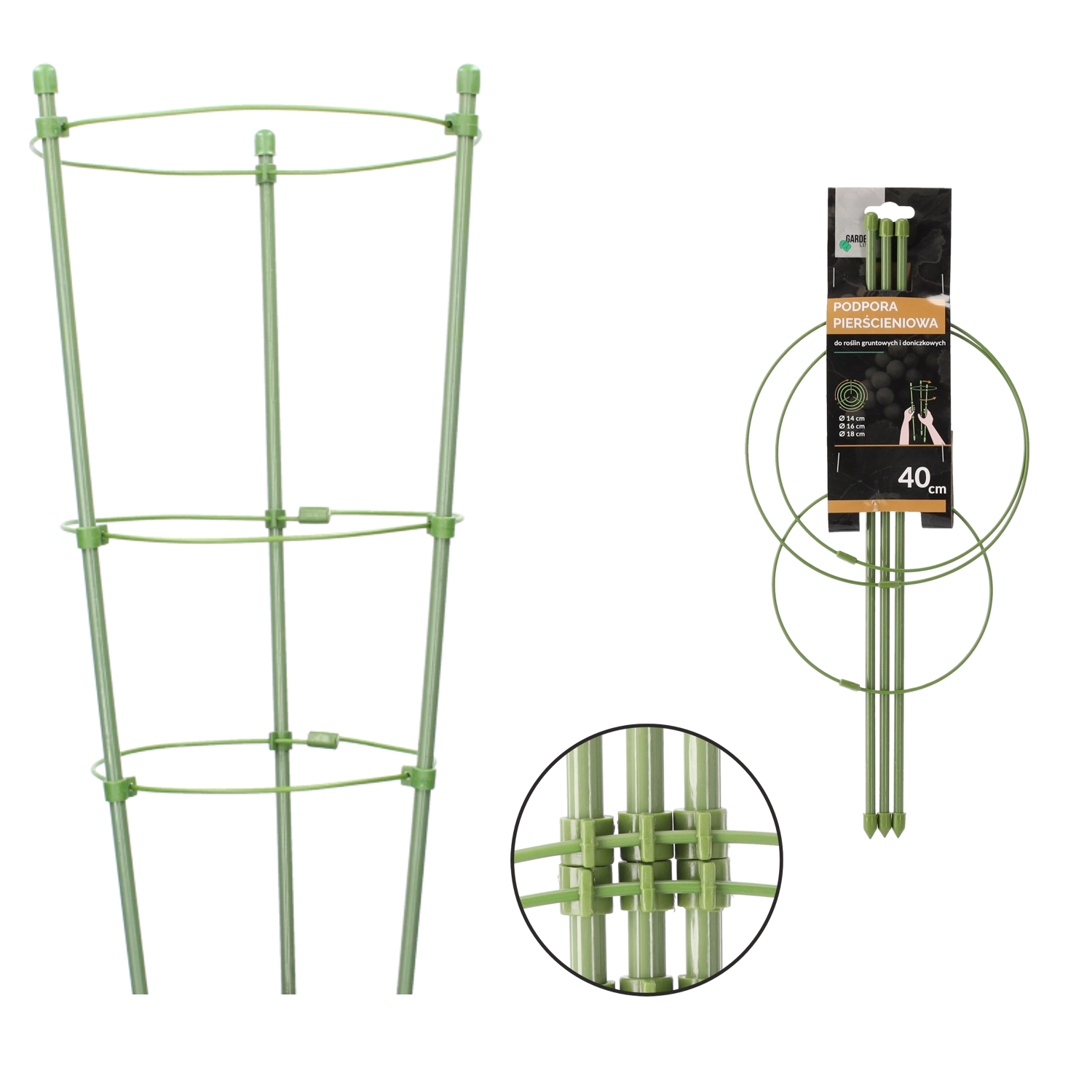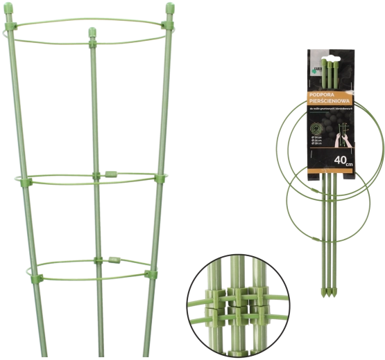 Ce tuteur circulaire à trois anneaux est une excellente solution pour les plantes d’intérieur, les massifs de jardin et les petits arbustes. L’acier robuste revêtu de polyéthylène résiste aux intempéries et à l’usure mécanique, tandis que sa finition verte reste quasiment invisible dans les parterres.