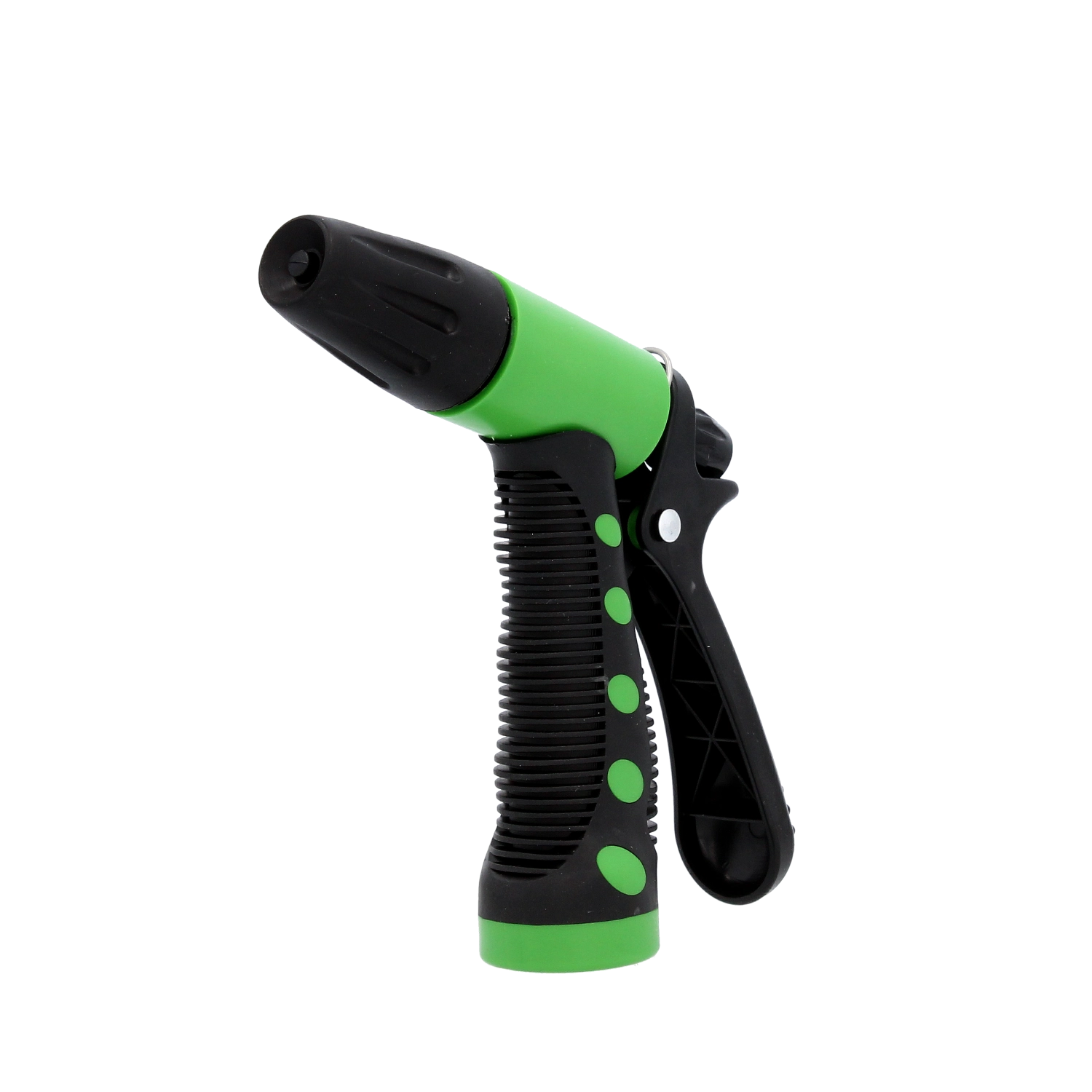 Ce pistolet pulvérisateur multifonction réduit considérablement le temps d’arrosage tout en protégeant les plantes sensibles grâce au réglage précis du jet. Sa poignée confortable, souple et antidérapante tient parfaitement en main et ne glisse pas même lors de travaux prolongés. Le verrou de gâchette maintient un débit d’eau constant sans avoir à maintenir le levier.