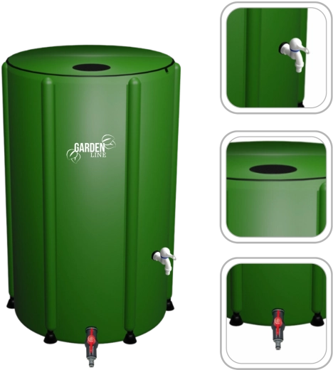 Compact et robuste, le tonneau pliable pour eau de pluie 250 l est idéal pour les petits jardins, terrasses et chalets. Le tissu PVC (1000D) résiste aux intempéries et à la corrosion, le couvercle zippé et les filtres en maille aux entrées/sorties protègent l’eau des impuretés. Grâce à sa structure pliable, il se transporte facilement et ne prend pas de place hors saison.