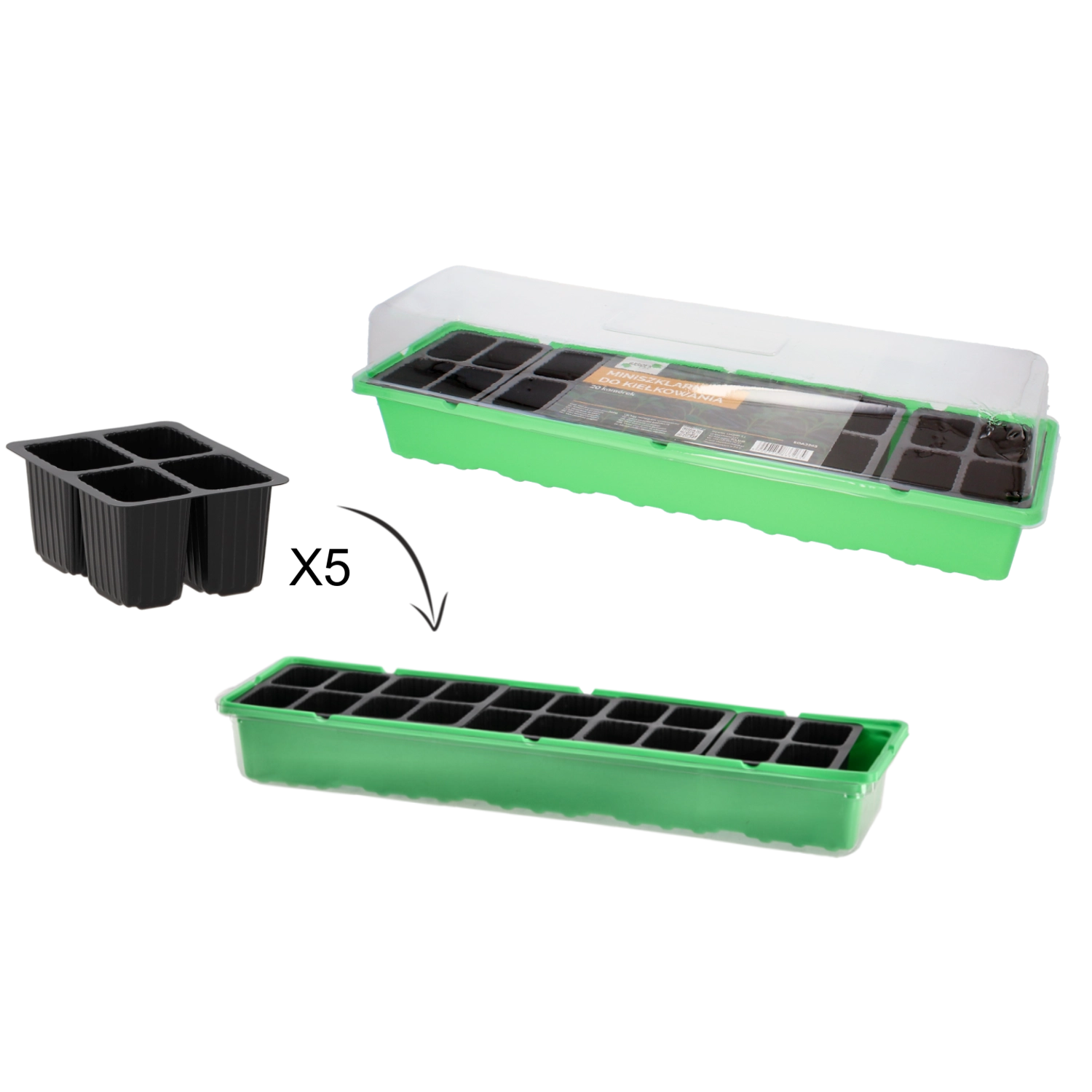 Le plateau segmenté avec 20 alvéoles facilite la planification des semis, la séparation des variétés et le repiquage sans endommager les racines.
