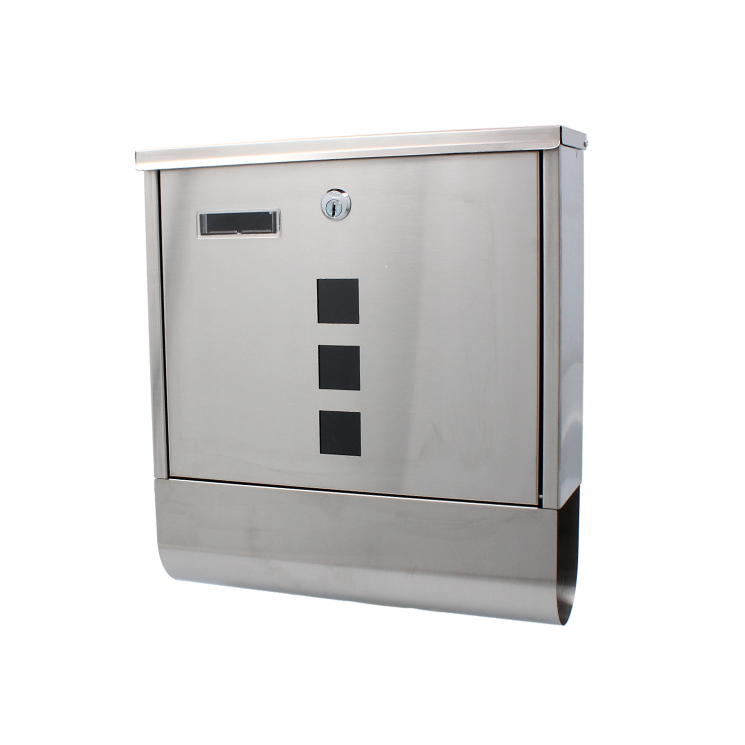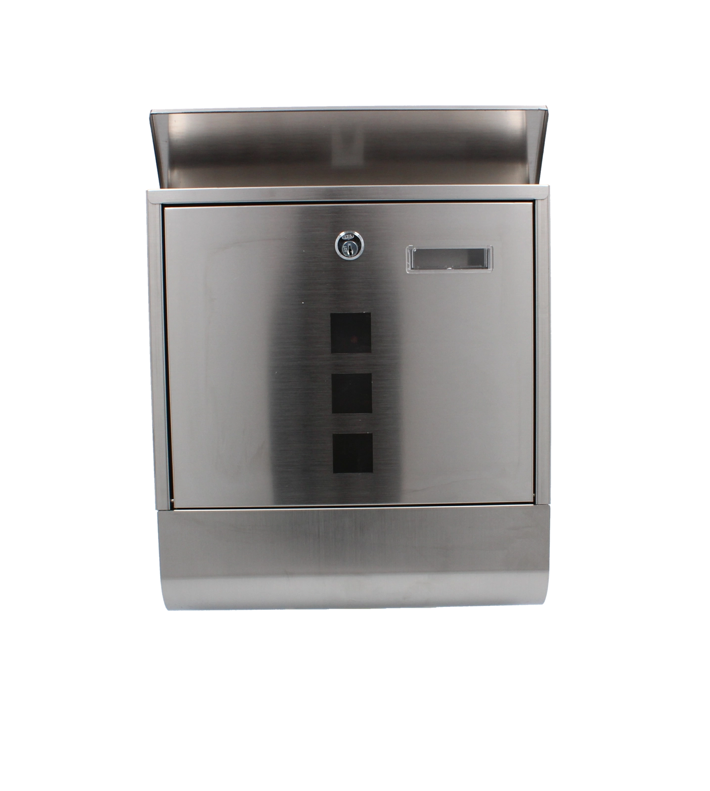 Trois fenêtres permettent de vérifier rapidement le contenu sans ouvrir. Le porte-journaux inférieur garde journaux et prospectus séparés et au sec.