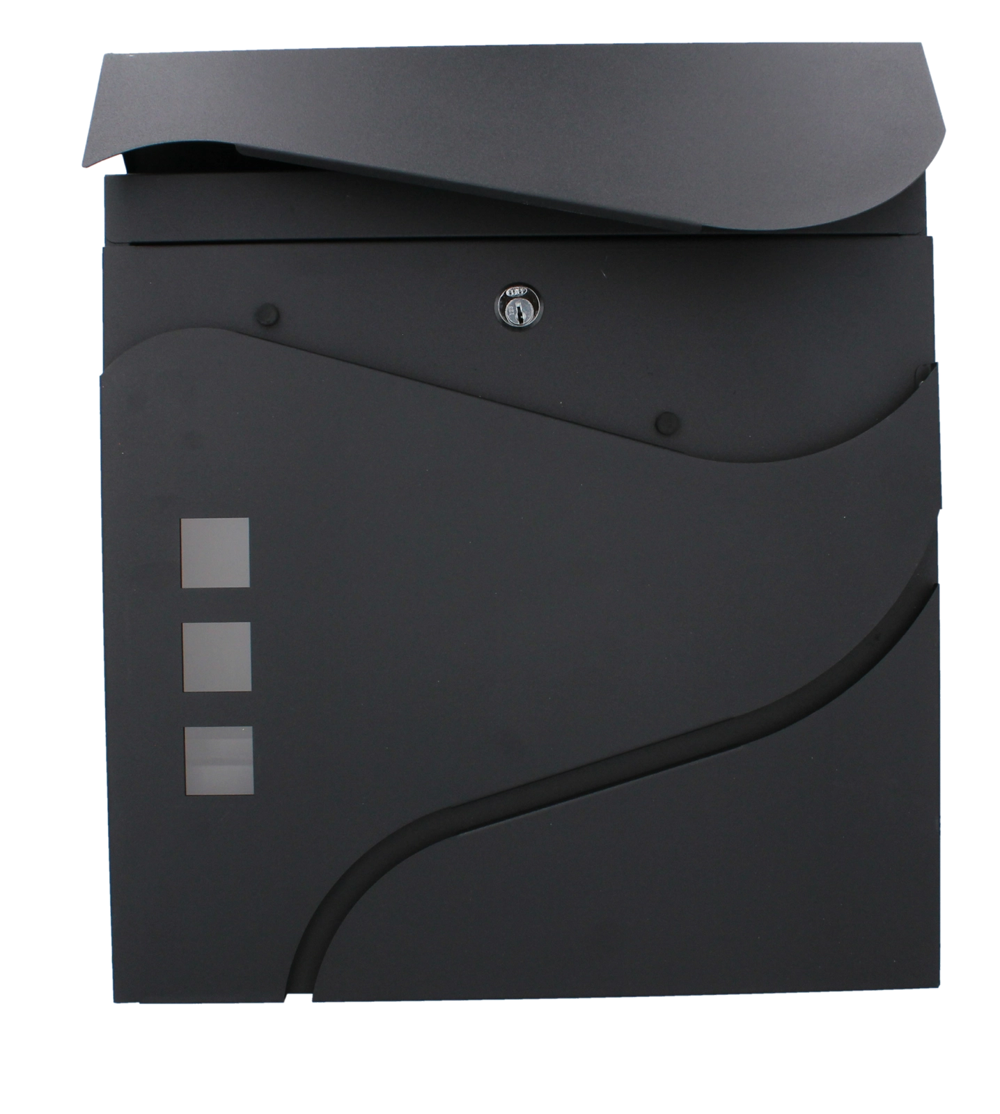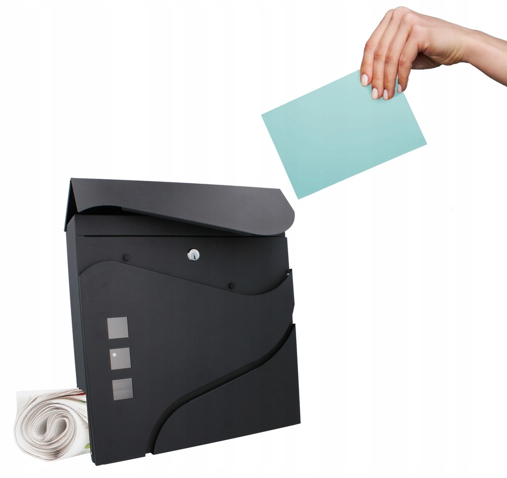 Le design minimaliste élégant, aux lignes douces et doté de trois fenêtres, complète les façades modernes. Un compartiment à journaux latéral ou inférieur (selon la variante) permet de ranger séparément les imprimés. Le montage mural est rapide grâce aux trous pré-percés.