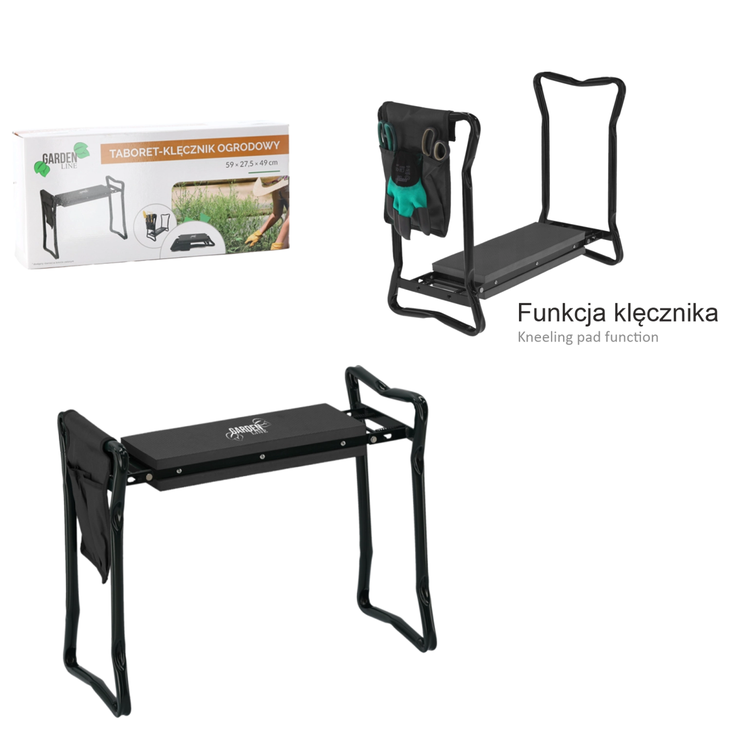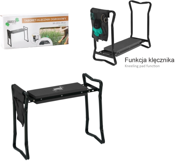 Genouillère et siège de jardin GARDENLINE, pliable, noir 59 × 27,5 × 49 cm