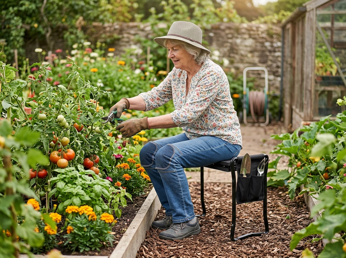 La pochette latérale en tissu garde votre sécateur, une petite griffe ou des gants à portée de main. Grâce aux pieds pliants, le produit se range aisément dans le garage ou la voiture et vous accompagne au jardin, en pique-nique ou à la pêche. Des matériaux de qualité (fer, mousse EVA, tissu Oxford) garantissent une longue durée de vie et une grande résistance à l’usage quotidien.