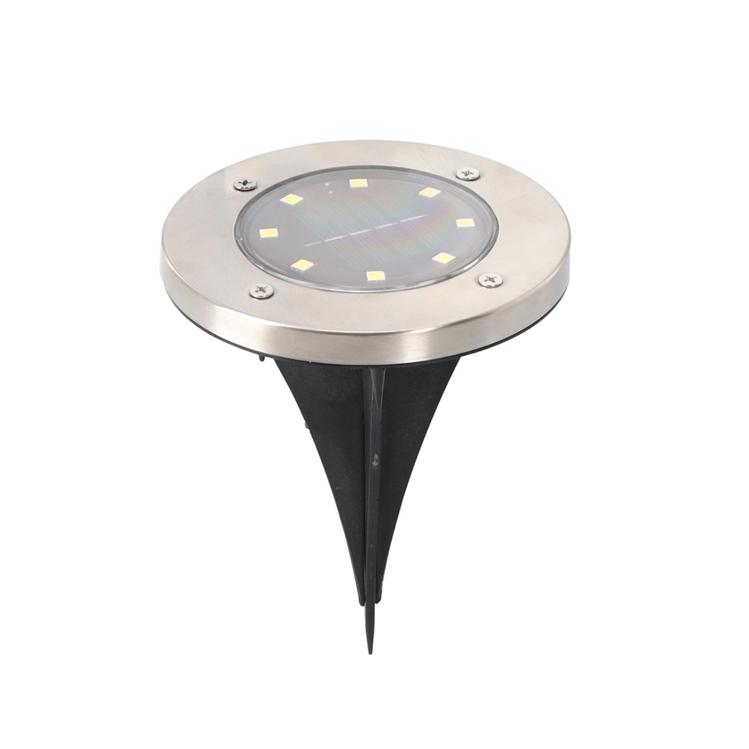 Élégant lot de 4 lampes solaires de jardin au fini argenté, idéal pour éclairer allées, entrées, terrasses et massifs. Chaque lampe comporte 8 LED pour un éclairage clair et homogène, une structure robuste en acier inoxydable et une alimentation solaire sans câbles. Grâce à l’allumage automatique au crépuscule, elles améliorent la sécurité et l’ambiance de votre jardin avec un minimum d’entretien.
