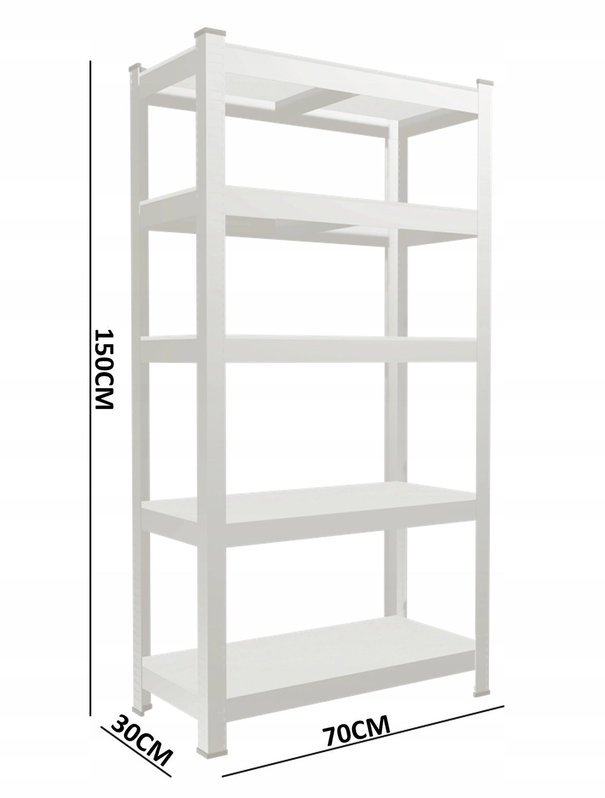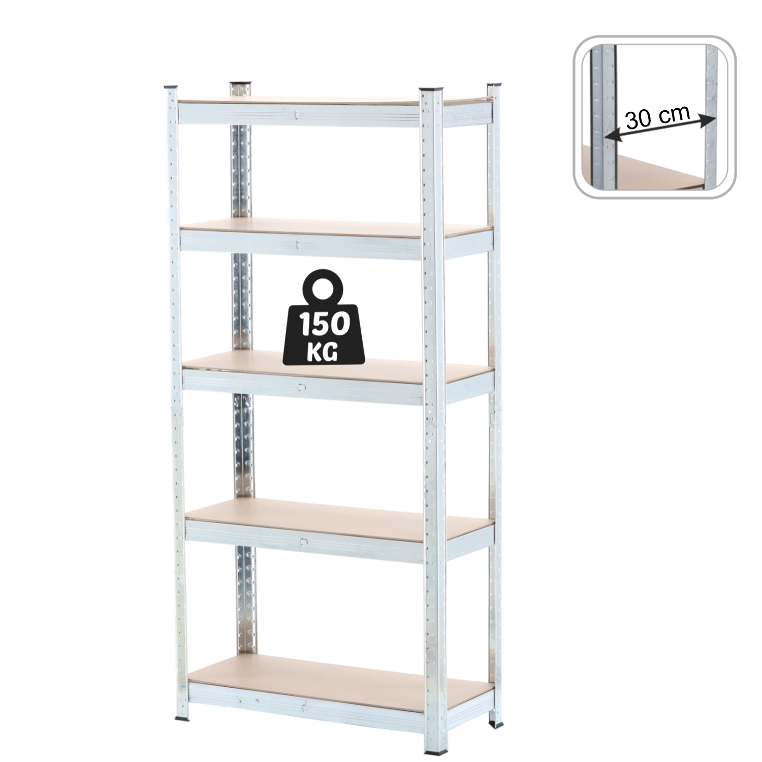 Cette étagère métallique à 5 niveaux est conçue pour une stabilité maximale et une longue durée de vie. Le cadre en acier massif associé à des plateaux MDF résistants assure un rangement fiable même pour des objets plus lourds, chaque plateau supportant jusqu’à 150 kg en cas de répartition uniforme de la charge. Sa profondeur fine de 30 cm économise de l’espace tout en offrant une surface de rangement généreuse.