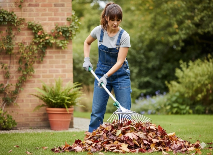 - Ratissage rapide des feuilles mortes et petits débris sur la pelouse.