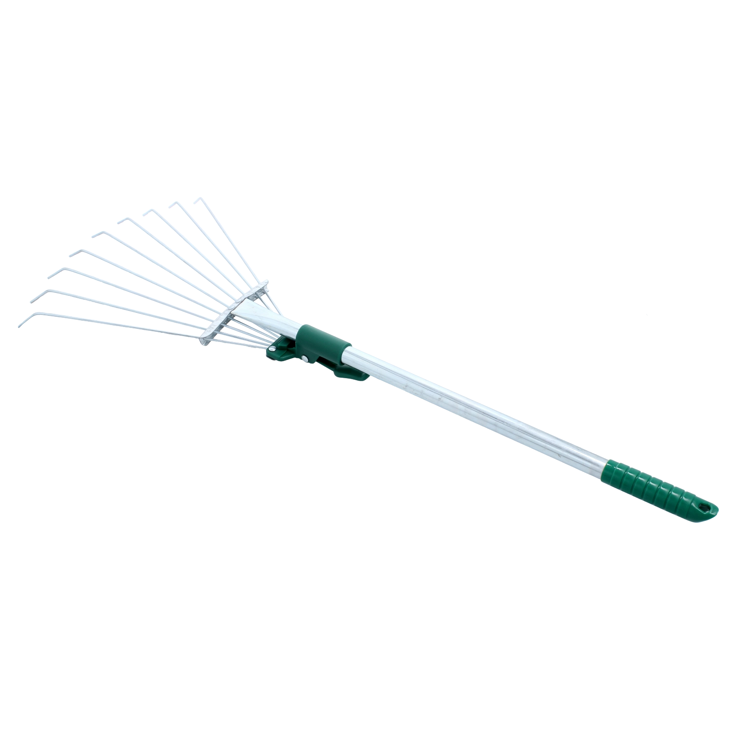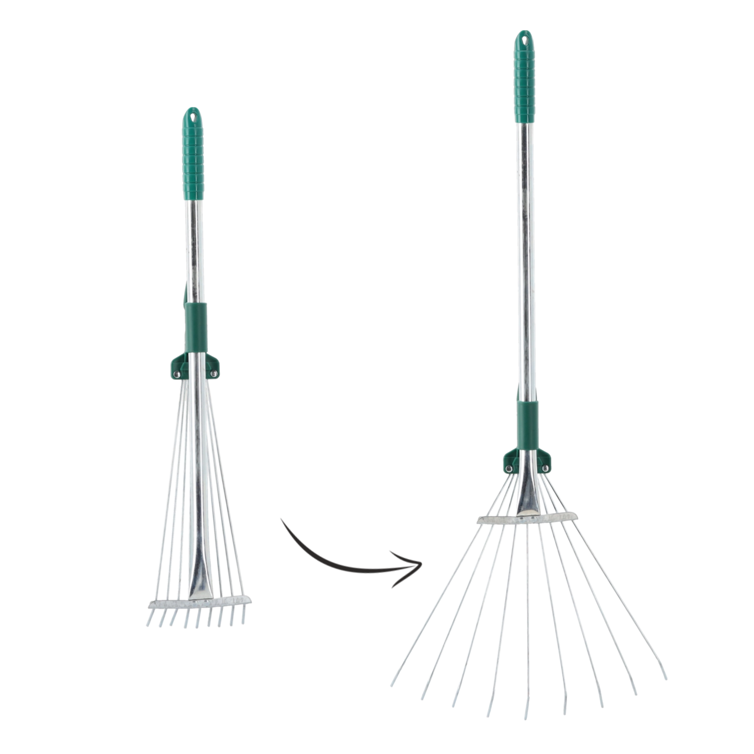 Le râteau éventail réglable est un choix idéal pour l’entretien quotidien du jardin. Sa tête ajustable avec dents souples et flexibles permet de modifier la largeur de travail pour une intervention précise dans les zones étroites ou un ratissage rapide sur de plus grandes surfaces. Le manche télescopique facilite la manipulation et économise de la place au rangement.
