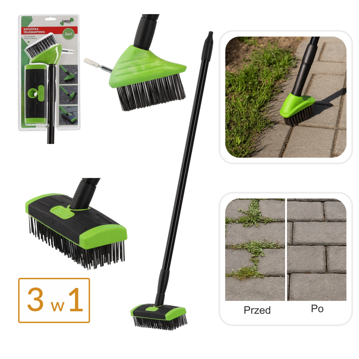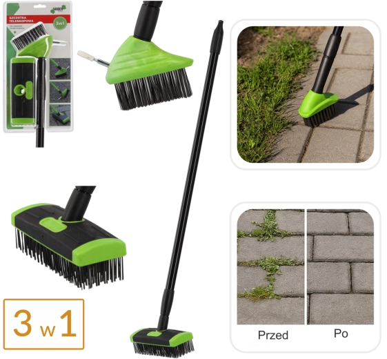 Kit de brosses télescopiques 3-en-1 pour désherbage et dallage