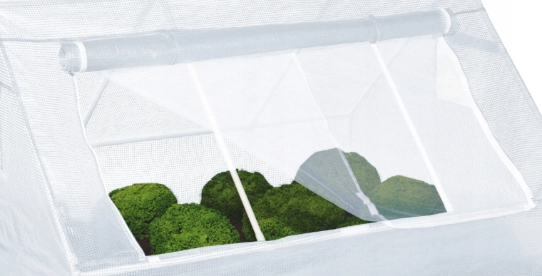 Les fenêtres à enrouleur avec sangles et moustiquaire assurent une aération efficace sans visiteurs indésirables. Le cadre en acier avec tubes de 19 mm de diamètre et les connecteurs PE confèrent à la serre une longue durée de vie, même en usage quotidien. Le montage est rapide et simple, accessible même aux débutants.