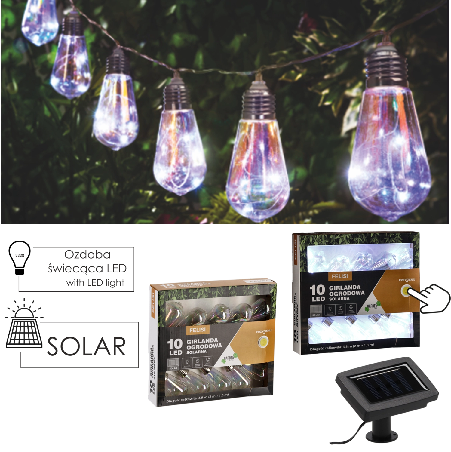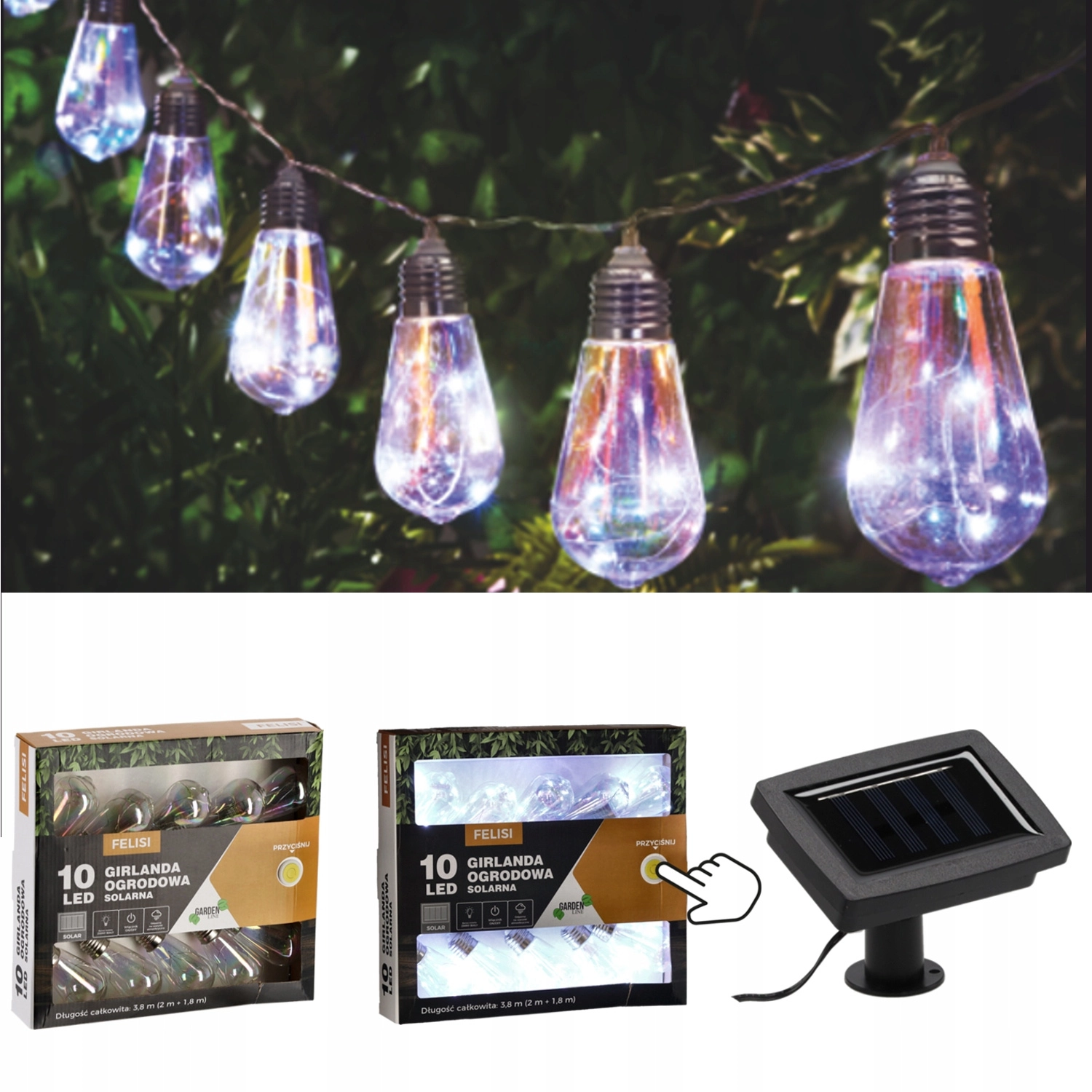 Le panneau solaire intégré emmagasine l’énergie pendant la journée et allume automatiquement la guirlande à la tombée de la nuit. Il économise l’électricité et protège l’environnement, sans prise nécessaire.