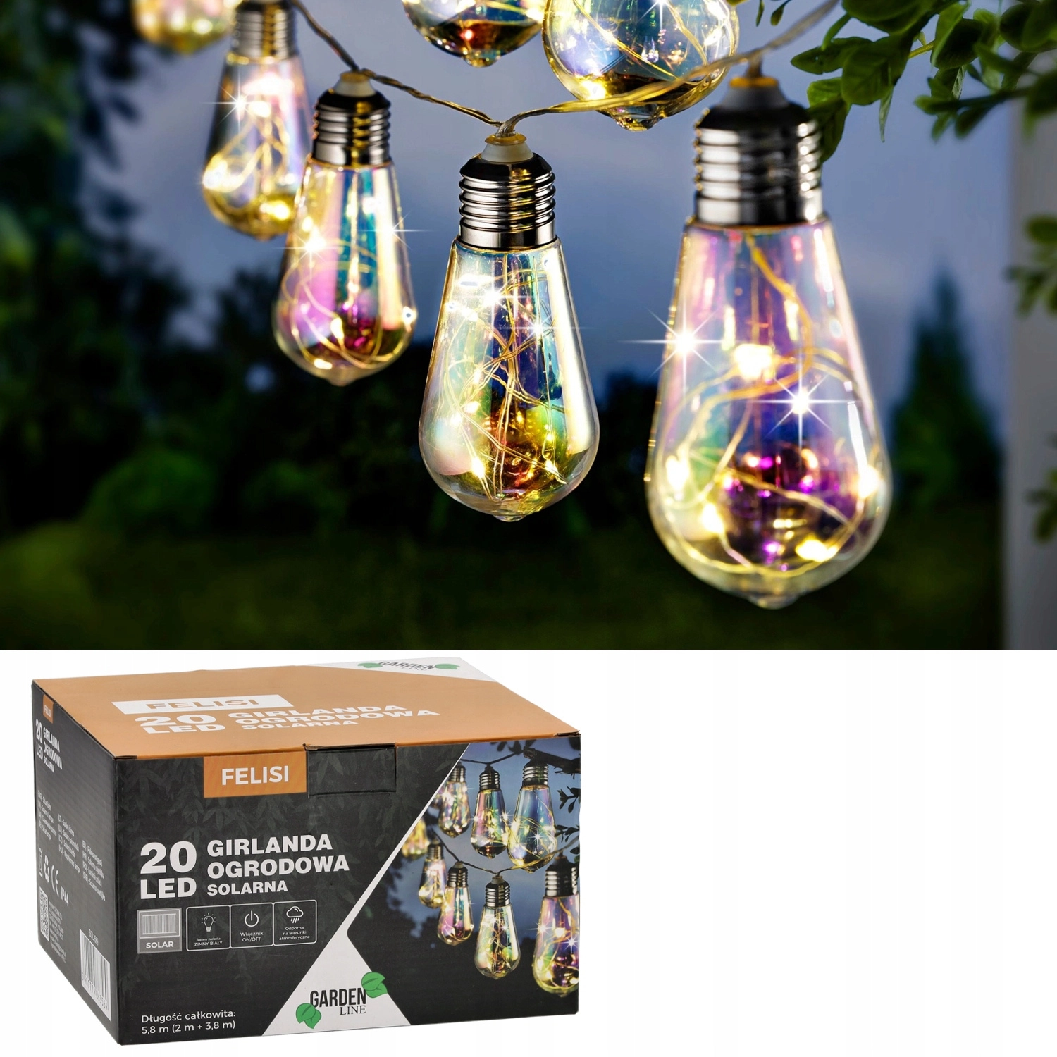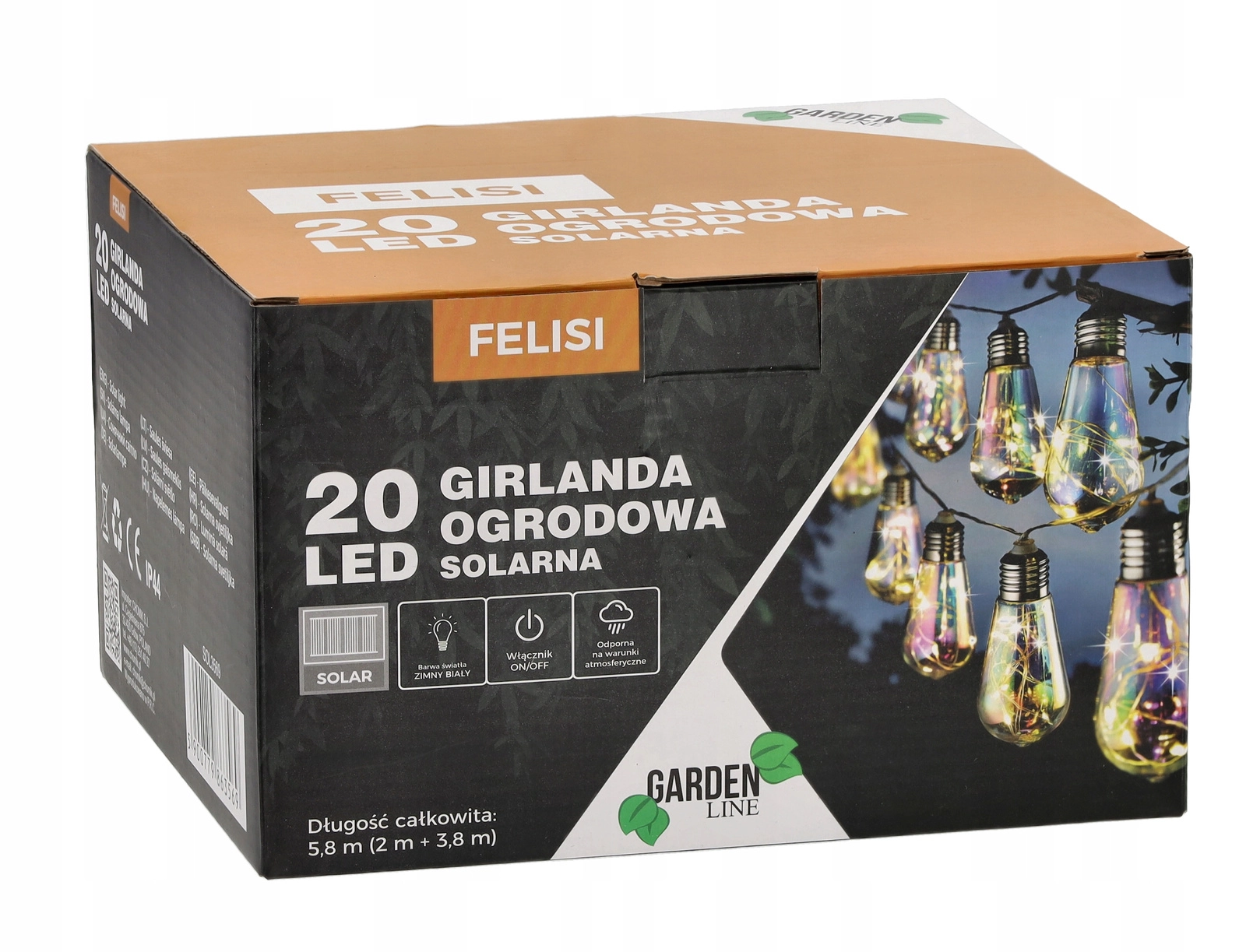 5,8 m (2 m de câble d’alimentation + 3,8 m de guirlande lumineuse)
