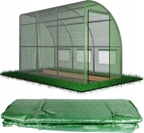 Bâche PE renforcée et résistante pour polytunnel de jardin type Połówka au format 3 × 1,5 m, offrant aux plantes une protection fiable contre les intempéries, un meilleur microclimat et une saison de végétation prolongée. La bâche avec filtre UV4, grille de renfort en PP et lèvre d’ancrage au sol est conçue pour une utilisation facile – avec porte enroulable zippée et 3 fenêtres avec moustiquaire. Attention : il s’agit uniquement de l’enveloppe sans structure.