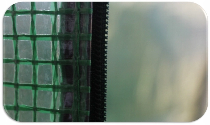 Bâche PE épaisse d’environ 140 g/m², renforcée par une grille PP, offrant longue durée de vie, stabilité et protection solaire grâce au filtre UV4.