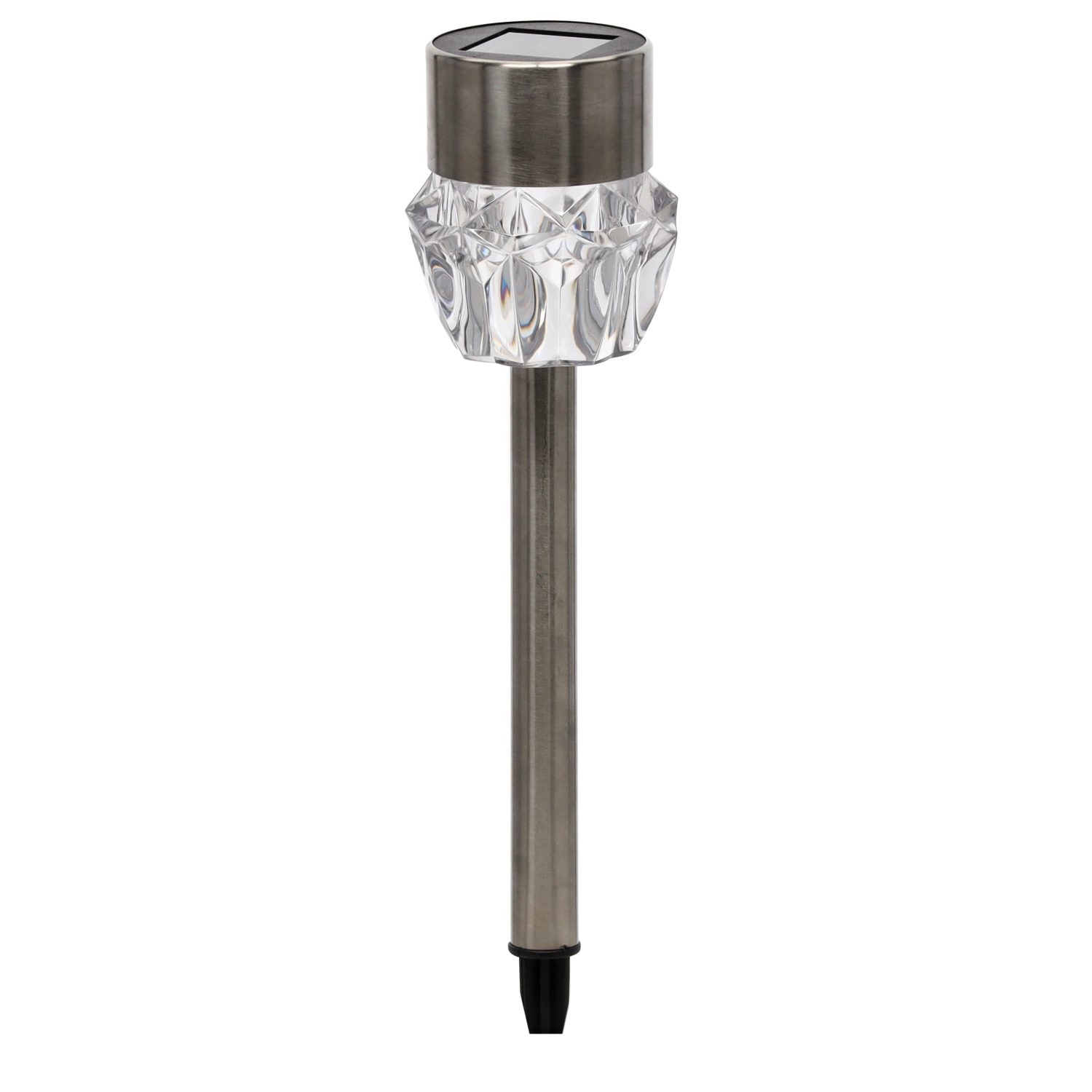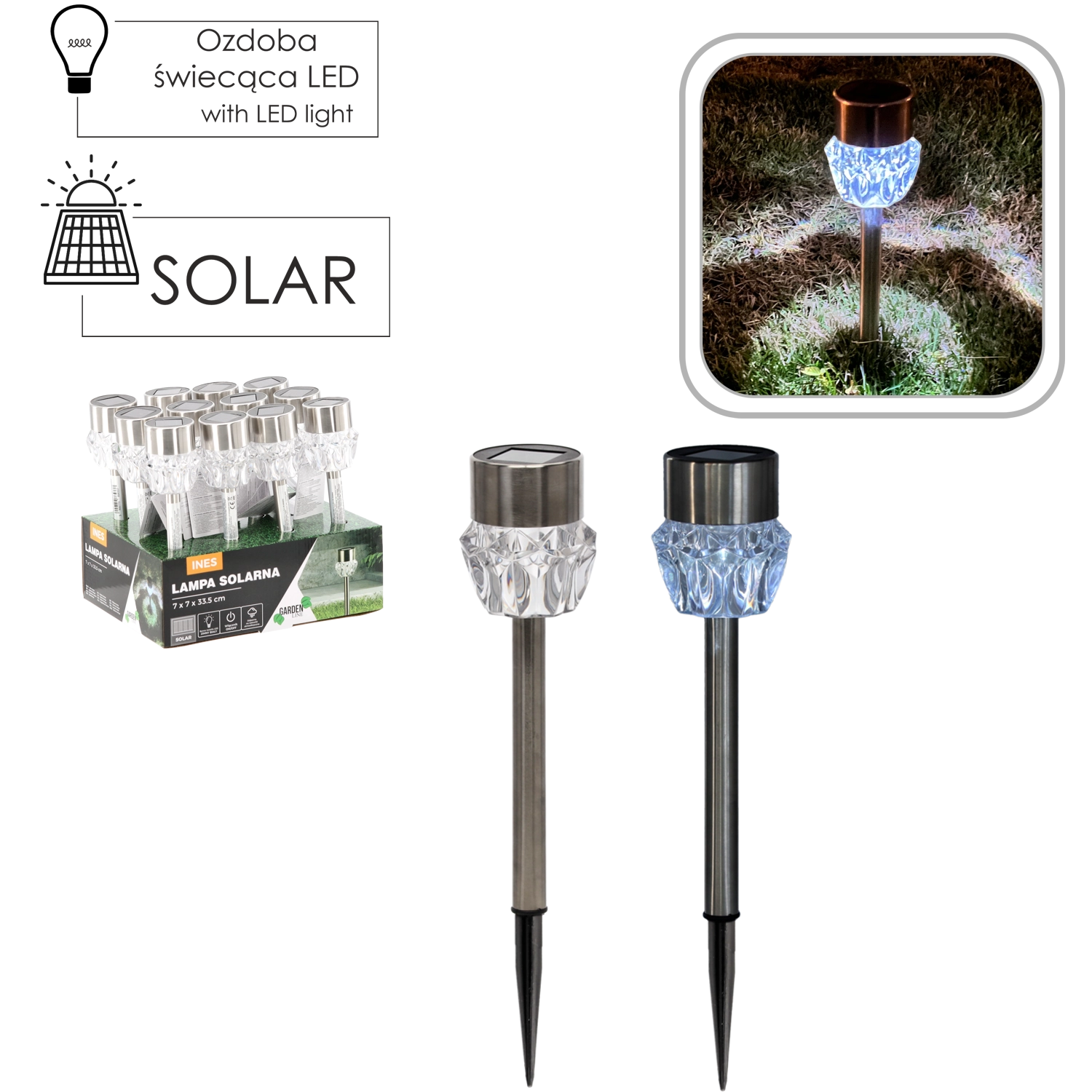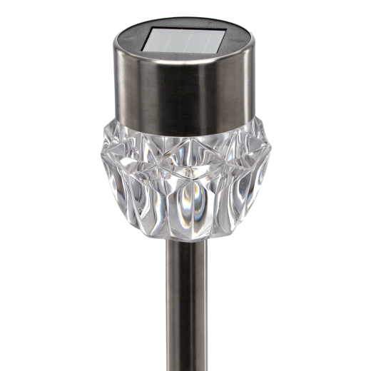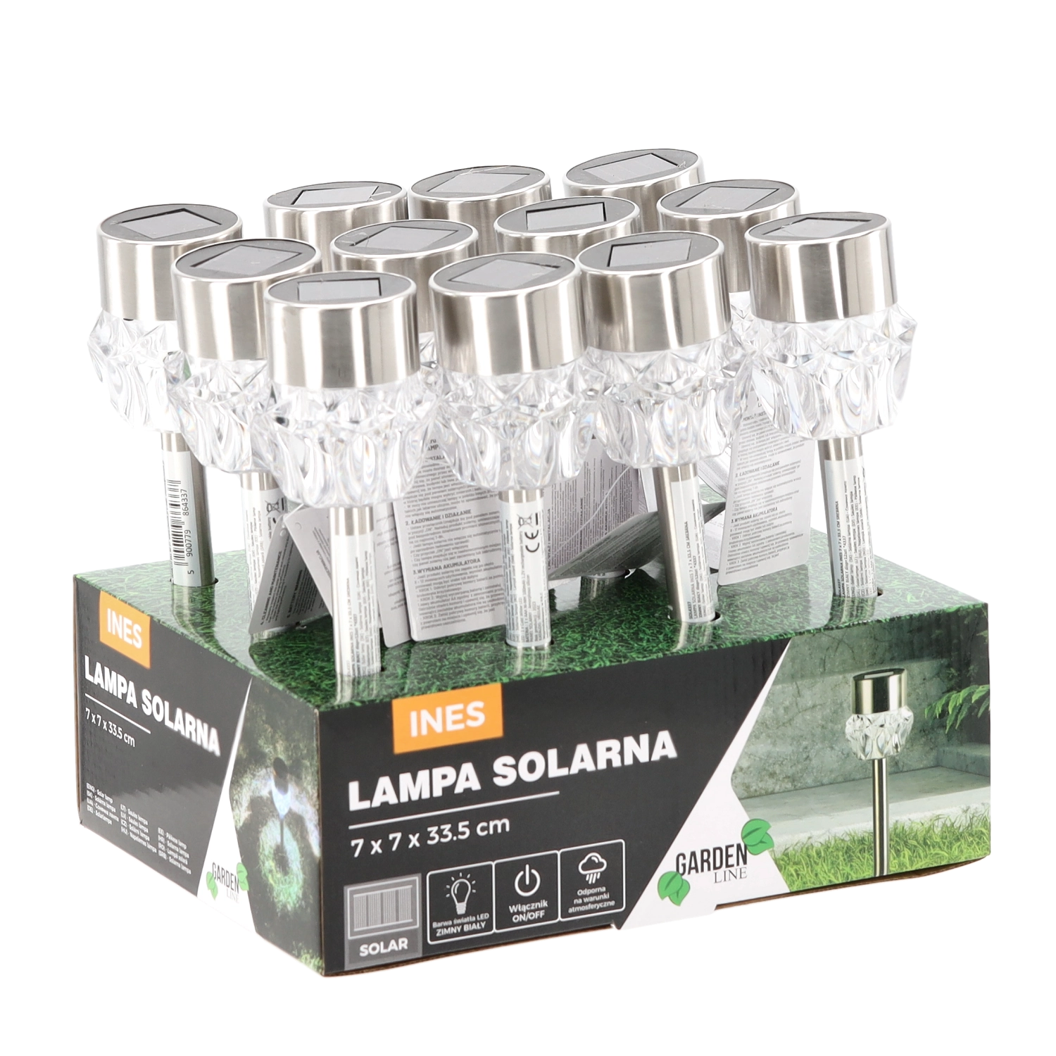 Élégante lampe de jardin solaire INES avec corps argenté et lentille décorative illumine allées, terrasses et massifs. Grâce à l’alimentation solaire, aucun câblage ni frais supplémentaires : elle s’allume automatiquement à la tombée de la nuit et offre une LED blanc froid. La protection IP44 assure un fonctionnement fiable par tous les temps.