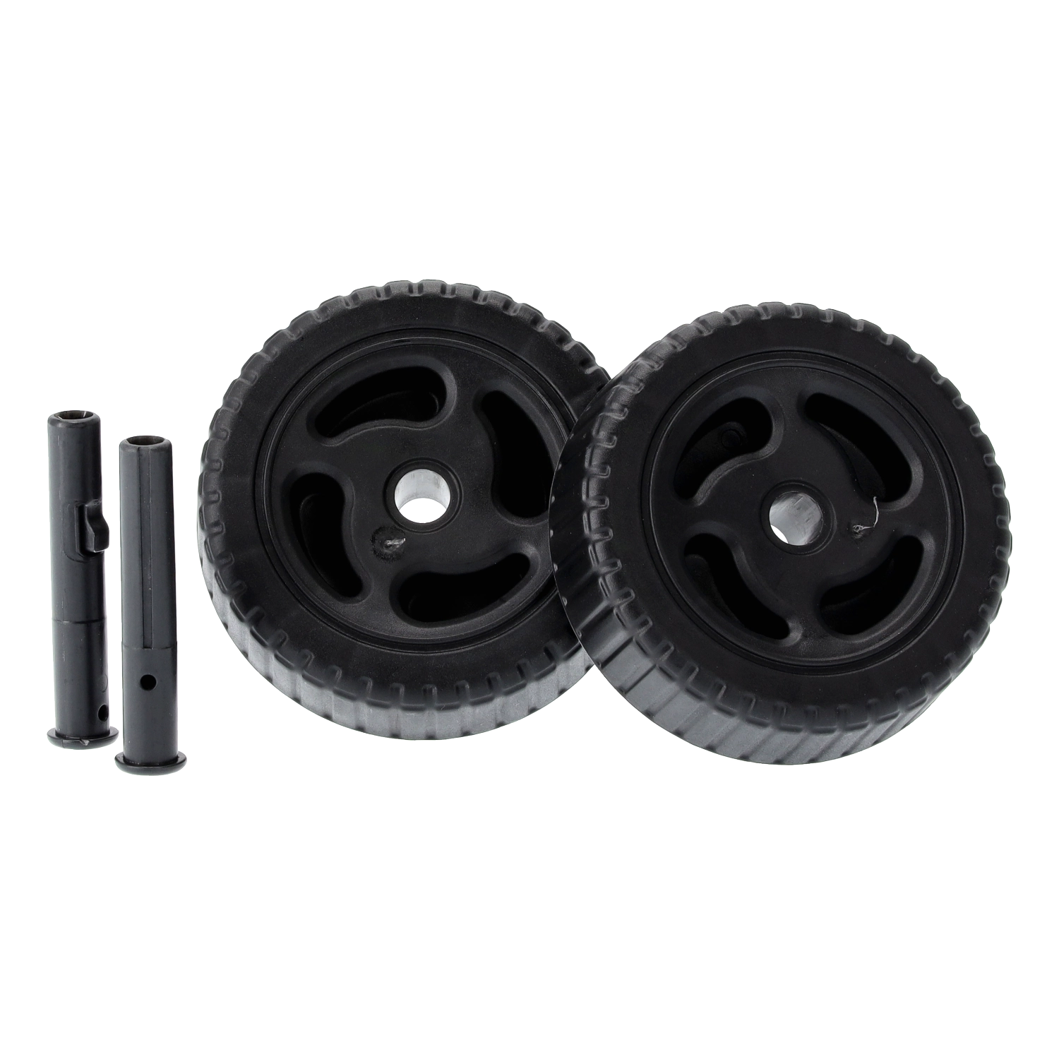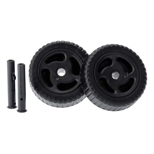 Deux roues en plastique robustes et un centre de gravité équilibré assurent un déplacement fluide sur pelouse, gravier ou pavés, sans effort inutile.