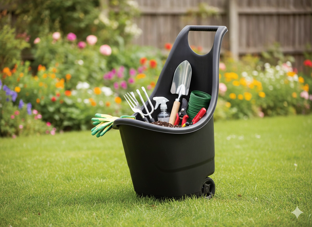 Le plastique résistant supporte la pluie et le soleil, de sorte que le chariot conserve son aspect et sa fonctionnalité toute la saison. Grâce à sa conception verticale et à son rebord arrondi, il est facile à manipuler et prend peu de place au rangement.