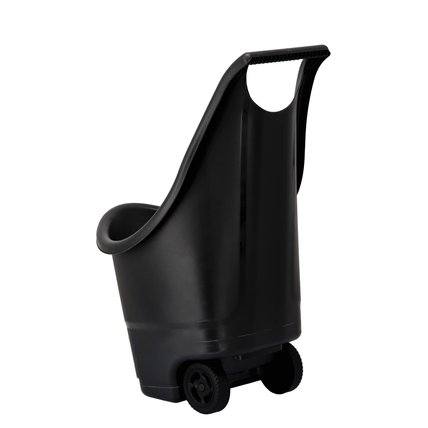 La poignée haute, ergonomique, assure une prise en main sûre et facilite le basculement lors du vidage.