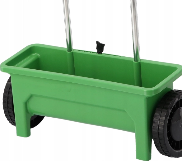 La trémie en polypropylène résiste aux intempéries et aux chocs. Les grandes roues assurent une progression stable et un guidage fluide sur différents types de surfaces.