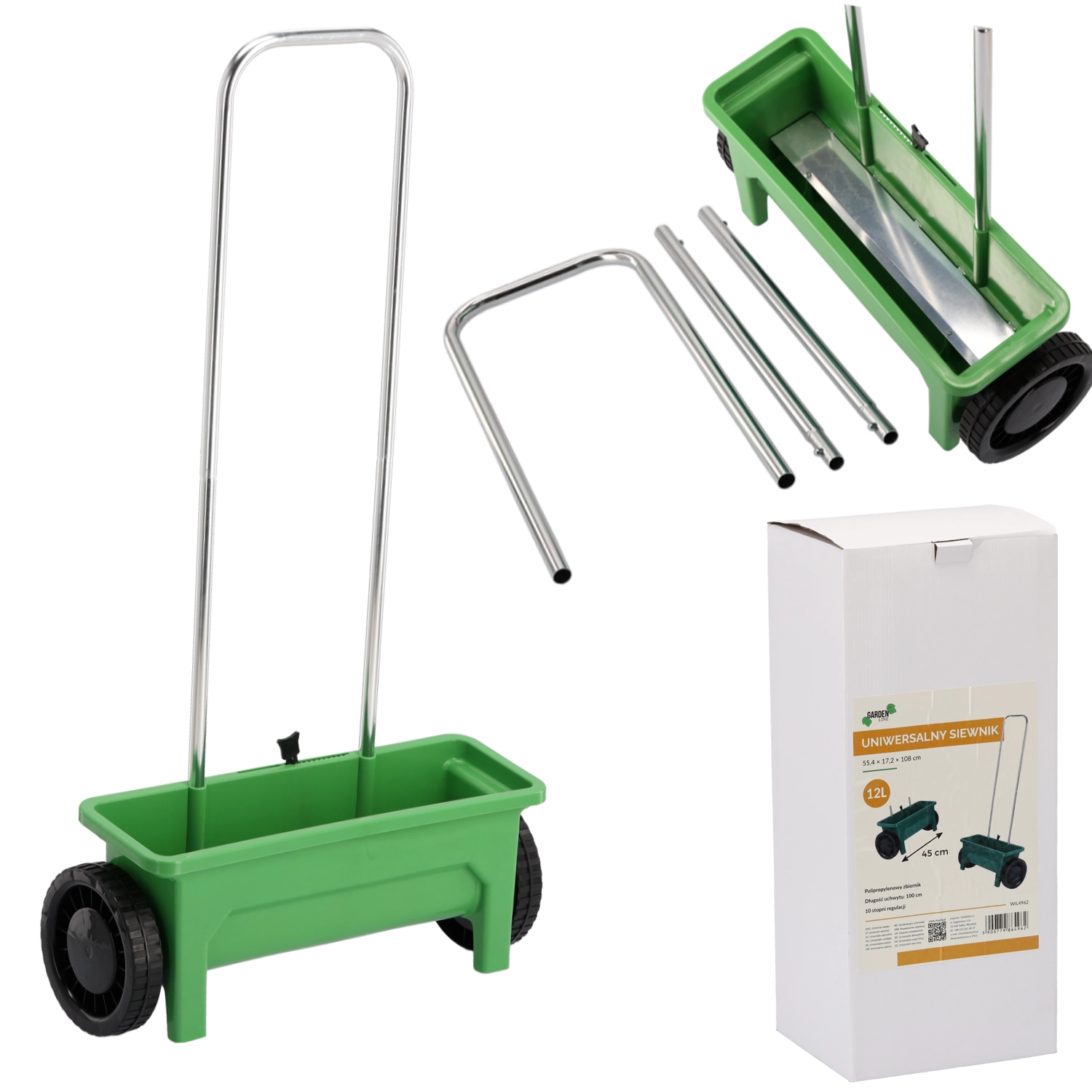 Grâce à la régulation du dosage à 10 niveaux, adaptez facilement le débit aux semences fines, aux engrais granulés et au sel d’hiver. La largeur de travail de 45 cm accélère les interventions sur grandes surfaces, tandis que le polypropylène résiste aux intempéries et aux sollicitations mécaniques.