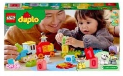Le train éducatif apprécié de LEGO DUPLO aide les enfants à découvrir le monde des chiffres de manière ludique. Ils peuvent empiler, retirer, ordonner et trier les briques numérotées sur les wagonnets tout en développant la coordination œil–main et la pensée logique.