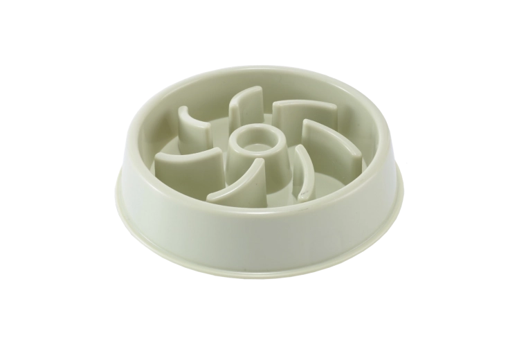 Les obstacles internes forment un labyrinthe qui répartit la nourriture en petites portions. Le chien ou le chat mange plus lentement, avale moins goulûment et digère mieux.