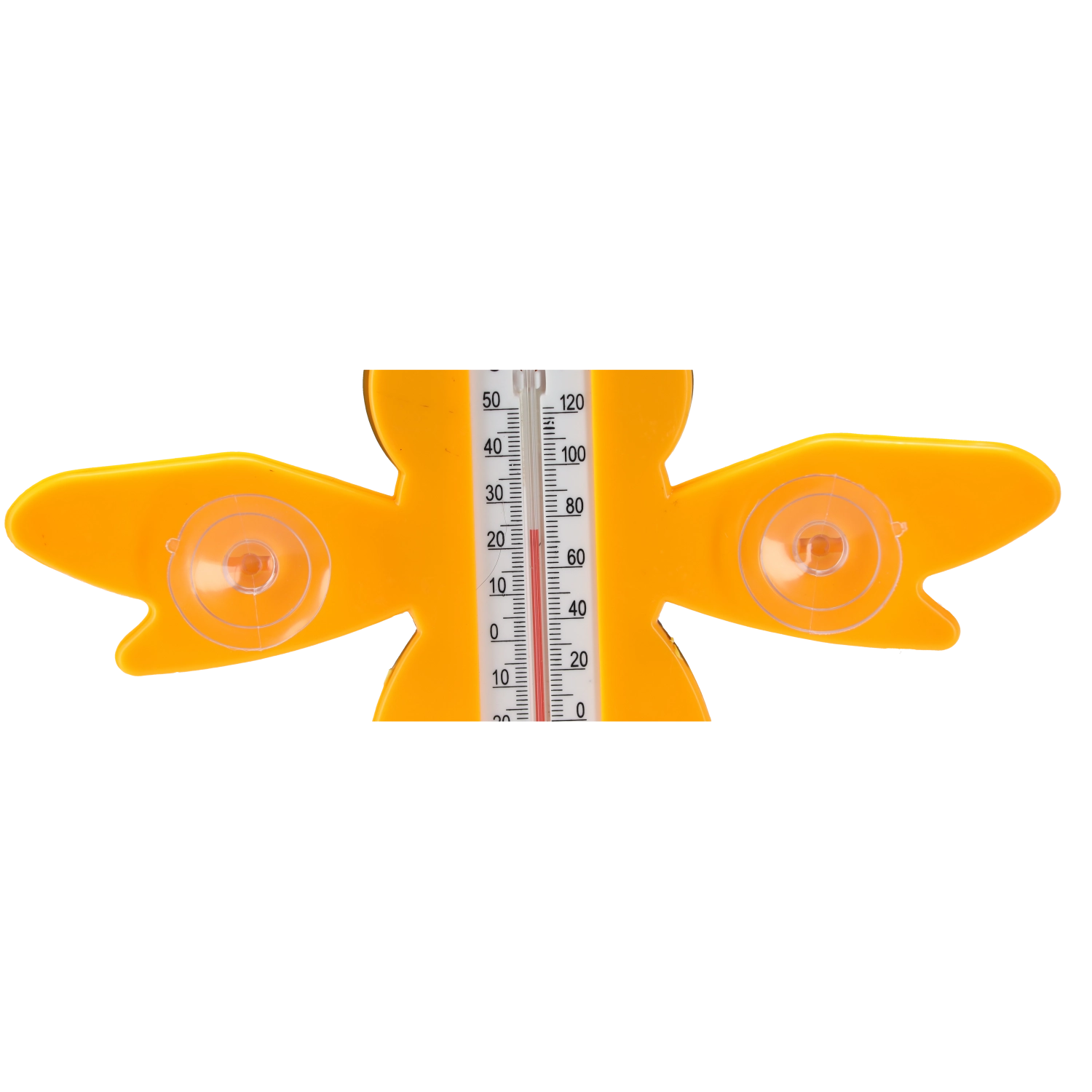 Ce thermomètre joyeux en forme d’abeille apporte une note ludique à votre fenêtre tout en indiquant précisément la température extérieure. Les ventouses permettent une installation rapide sur les surfaces lisses comme les vitres ou les carreaux, et le thermomètre peut être utilisé à l’extérieur comme à l’intérieur.