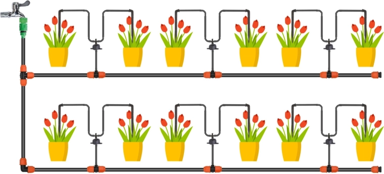 - Économie d’eau – l’irrigation goutte à goutte délivre l’eau exactement où elle est nécessaire.