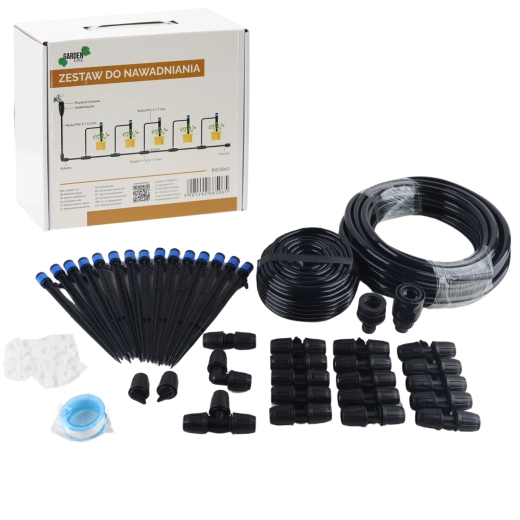 Tout le nécessaire dans une seule boîte : goutteurs, tuyaux, raccords, tés, embouts et ruban PTFE. Montez et démarrez en un rien de temps.