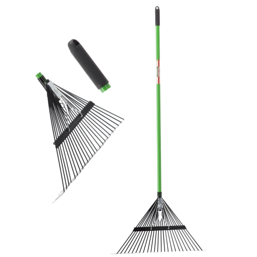 Râteau de jardin pratique et robuste avec largeur des dents réglable pour nettoyer allées, massifs et pelouses. Le manche léger en fibre de verre assure un travail confortable, tandis que la tête en acier avec revêtement poudre offre une longue durée de vie et une fiabilité au quotidien.
