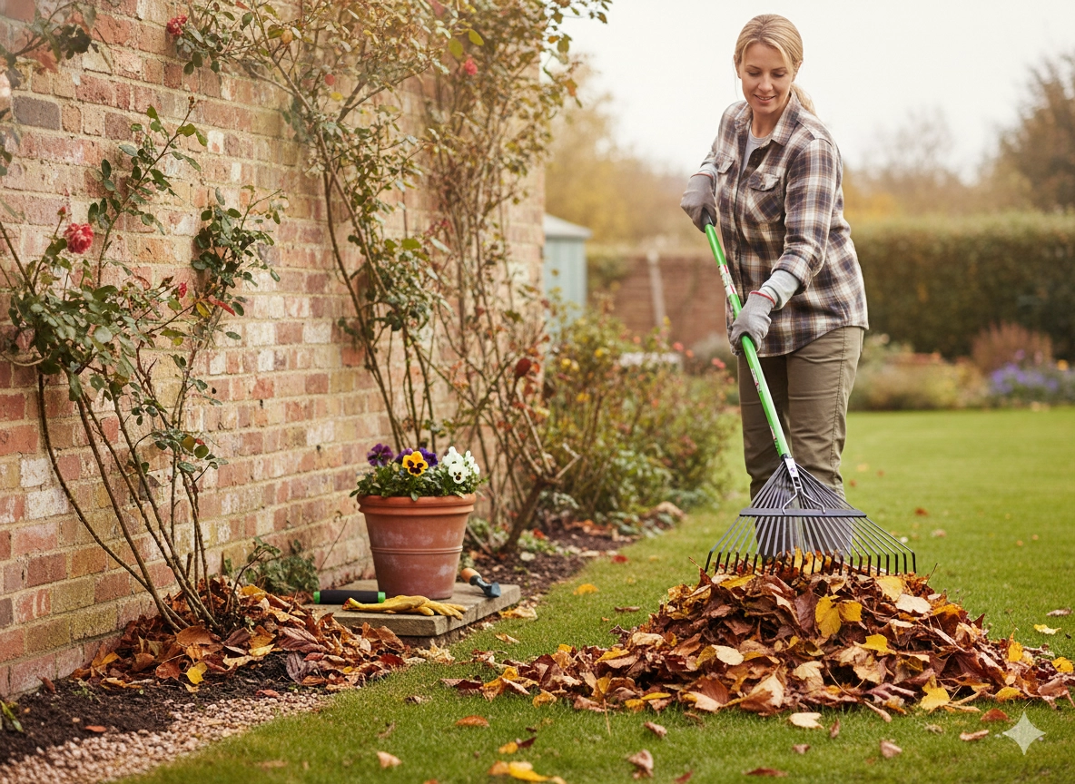 - Ramassage des feuilles, de l’herbe et des déchets de jardin sur allées, massifs et pelouses