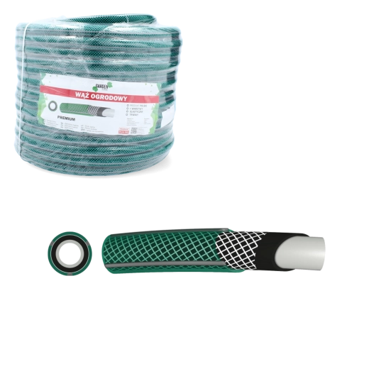 Tuyau d’arrosage Premium résistant, longueur 20 m et diamètre 3/4", pour une utilisation intensive. Structure à 4 couches en PVC souple avec renfort textile assurant une haute résistance aux dommages mécaniques. Pression de service 8 bar (20 °C), pression d’éclatement > 24 bar (20 °C). Fonctionnement fiable entre -10 °C et +60 °C. Fabriqué en Pologne.