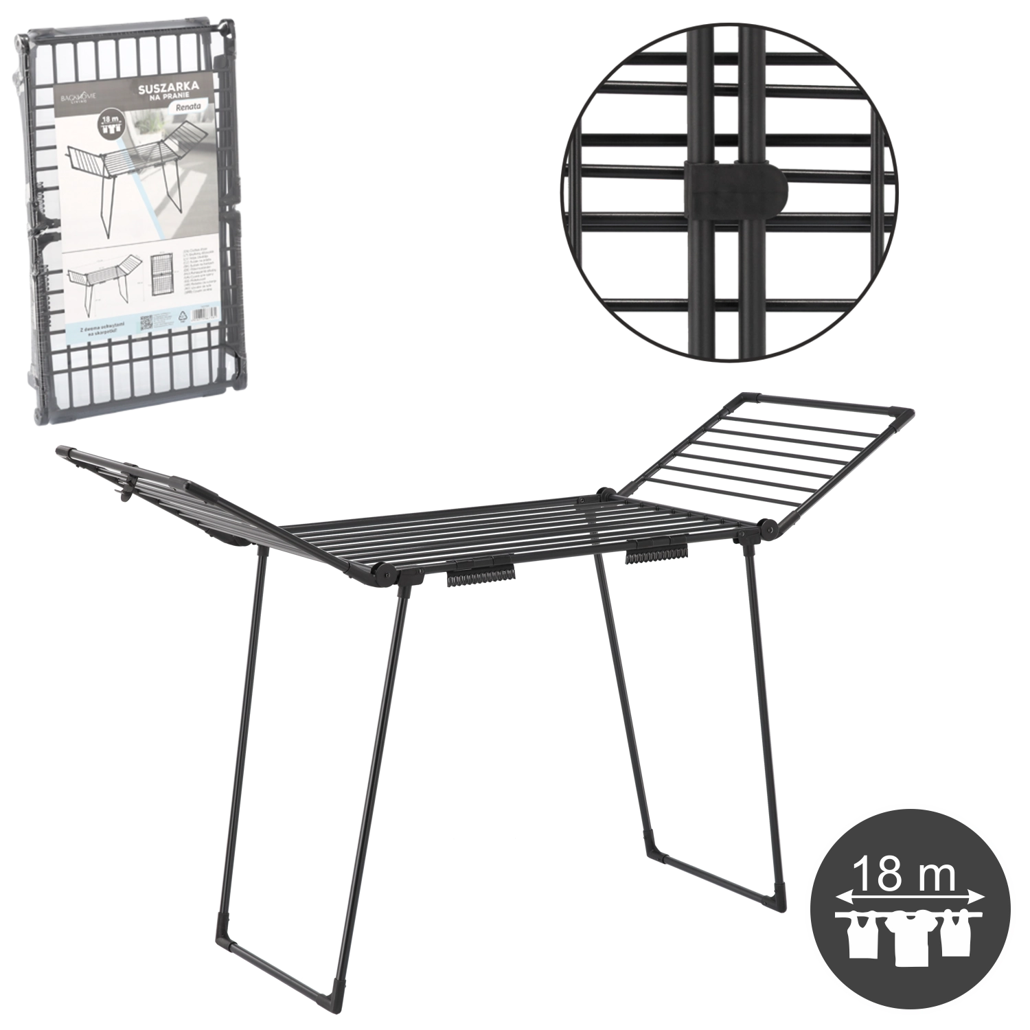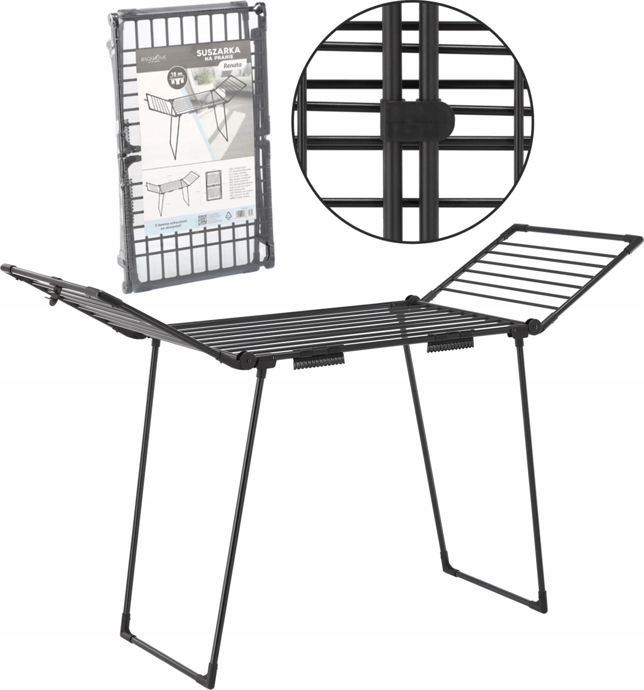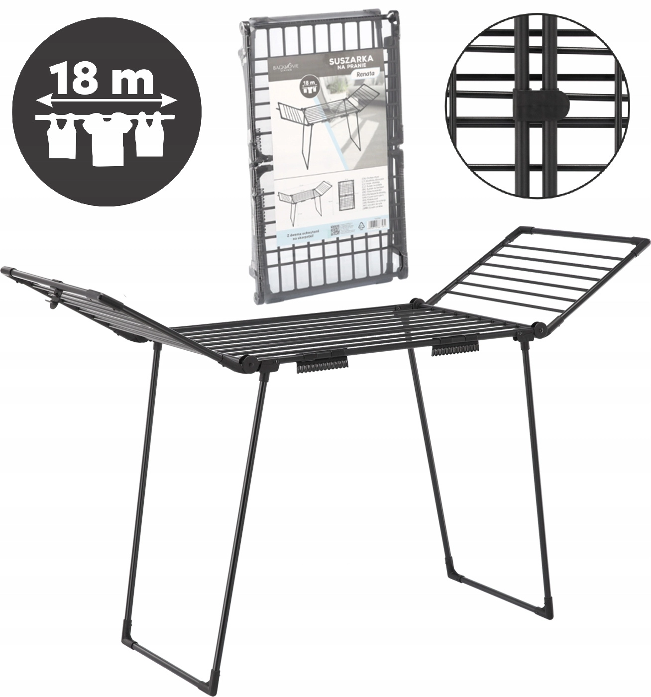 Vous cherchez un séchoir spacieux et résistant pour un séchage quotidien ? Le séchoir à linge Renata de BackHomeLiving offre tout ce dont vous avez besoin : une construction stable, une grande surface de séchage et des détails astucieux pour une utilisation confortable à la maison comme en extérieur. Sa finition noir mat s’intègre aux intérieurs modernes et le revêtement par poudre protège de la corrosion.