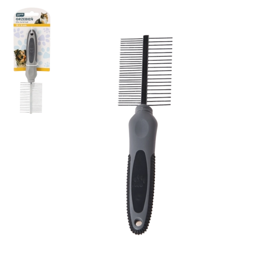 Pratique, le peigne double face pour chiens et chats de 19 × 5 cm est un excellent assistant pour l’entretien quotidien du pelage. Grâce à ses deux types de dents, il assure un démêlage efficace, facilite l’élimination des nœuds et favorise un aspect sain et brillant. Sa poignée ergonomique caoutchoutée garantit une prise en main confortable et sûre pendant le brossage.