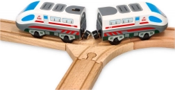 Cette locomotive peut facilement être connectée aux circuits de train en bois d'autres fabricants que vous possédez probablement déjà à la maison.