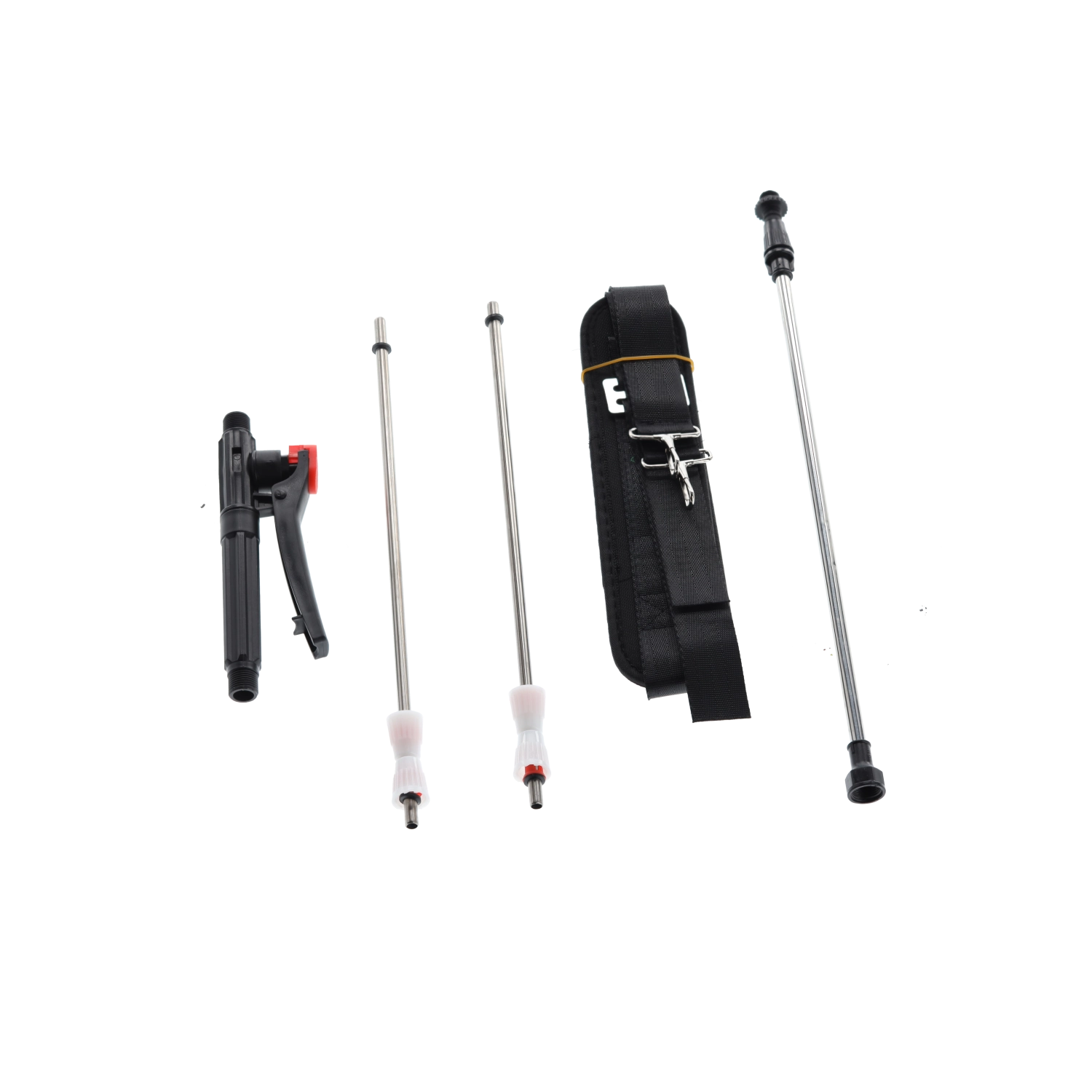 L’emballage comprend différentes buses en plastique pour divers types de pulvérisation, une lance en acier pour un guidage précis du jet et un régulateur de pression pour une adaptation optimale aux conditions du moment. Avec une tension de 12 V et une capacité de 8 Ah, vous bénéficiez d’une performance fiable et d’une longue autonomie par charge.