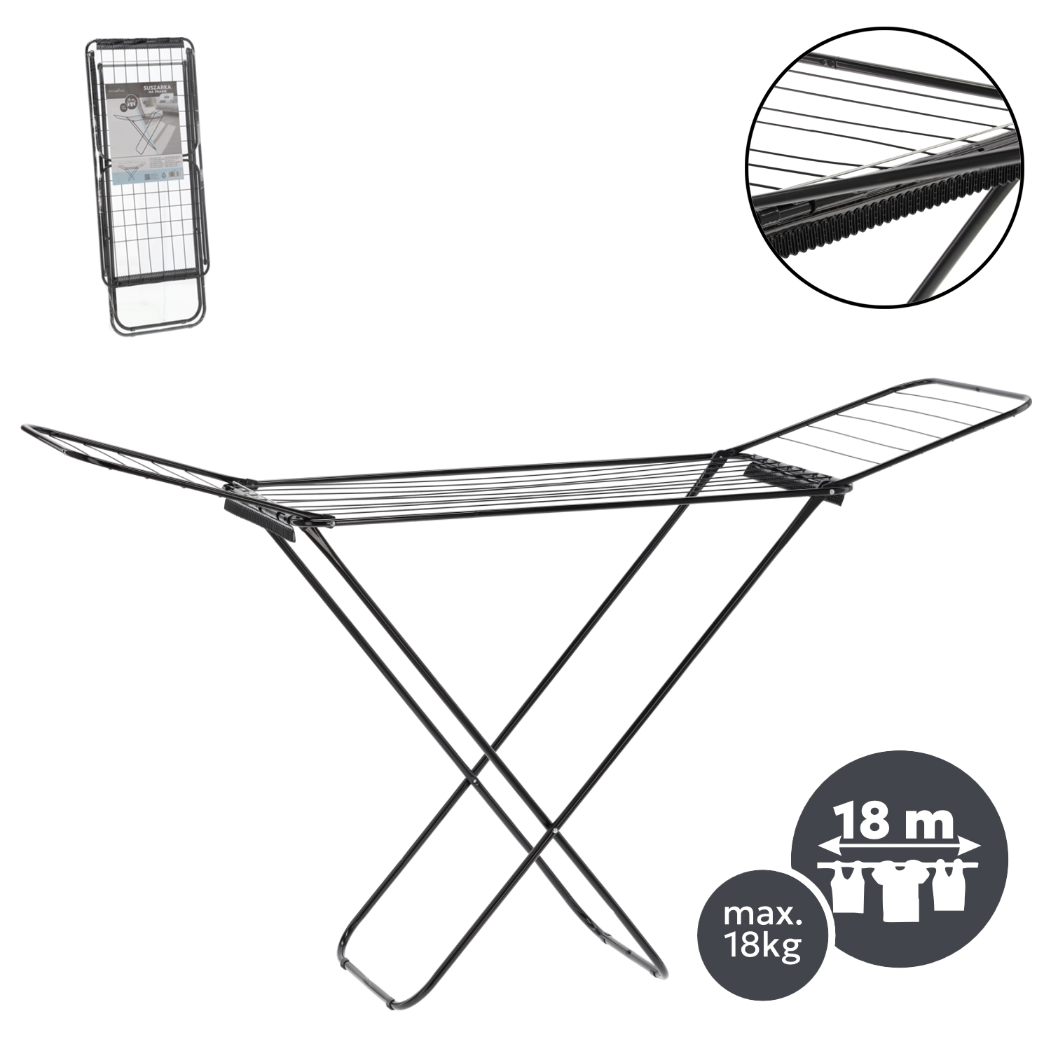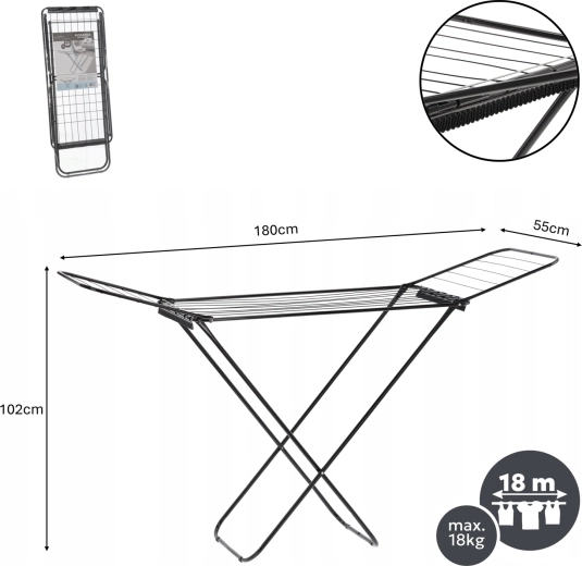 - 18 m de surface de séchage – suffisamment d’espace pour le linge de toute la famille