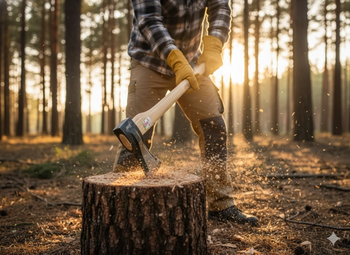 La hache est prête pour le travail en forêt comme à la maison. Elle gère fiablement le fendage des billots et la préparation du bois de chauffage dans toutes les conditions.