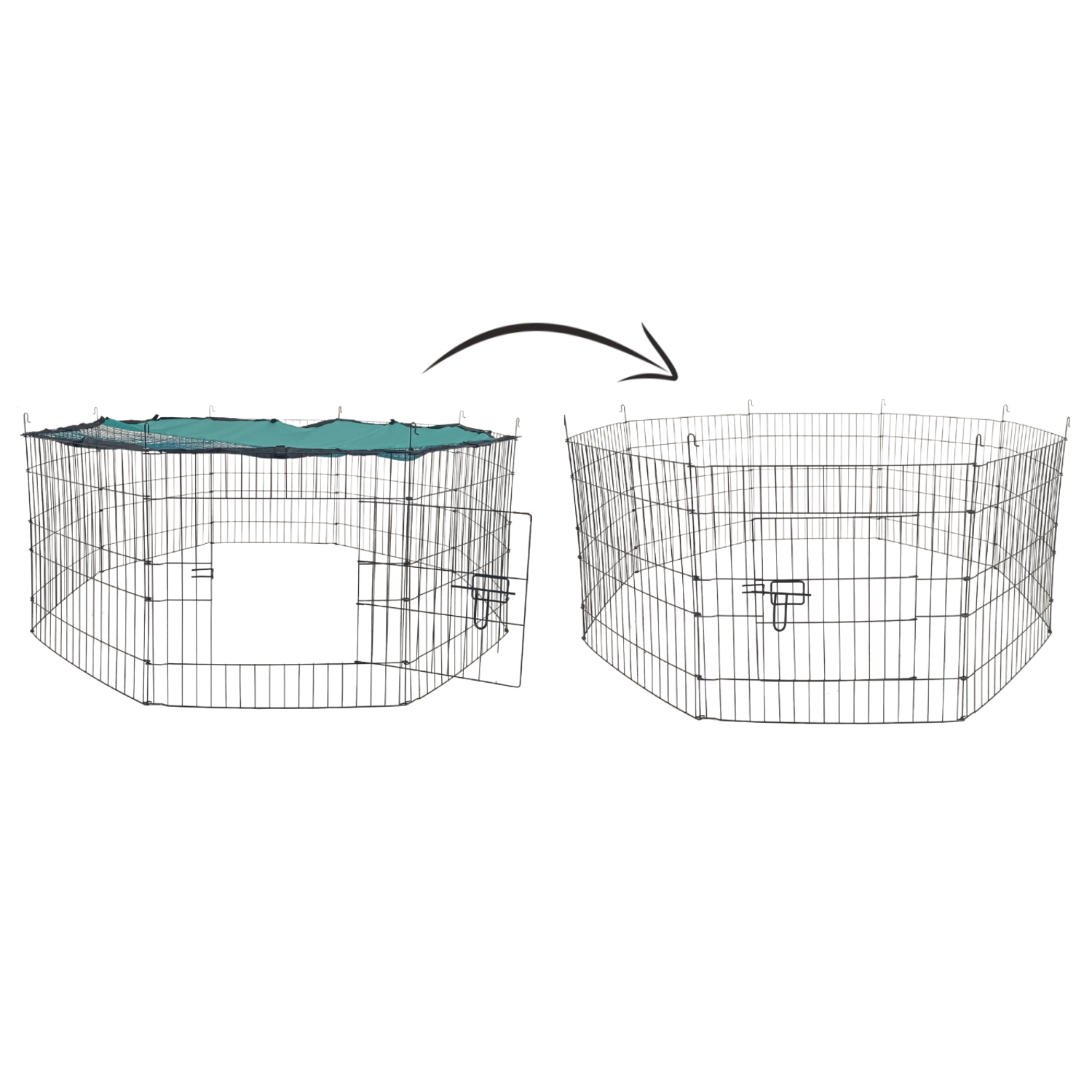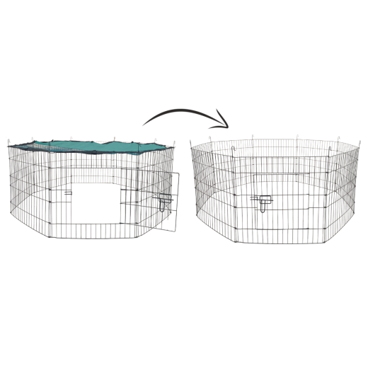 Grâce aux 8 panneaux (56 × 57 cm), vous pouvez modifier aisément la forme et l’emplacement de l’enclos selon l’espace disponible. Montage et démontage rapides en font une excellente solution pour le jardin, la cour, la maison de campagne, le camping et même pour séparer temporairement un espace lors du ménage.