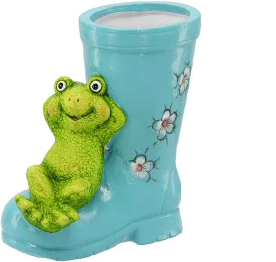Cette jardinière design en forme de botte avec grenouille égaye facilement chaque recoin. Idéale pour les herbes aromatiques, les succulentes et les petites fleurs, ses dimensions compactes permettent de la placer sur un appui de fenêtre, des marches, une table de terrasse ou la rambarde d’un balcon.